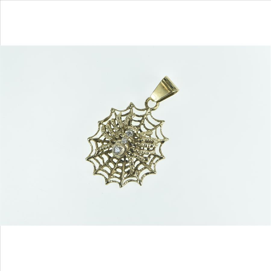 14K Diamond Spider in Spider Web Vintage Yellow Gold Pendant