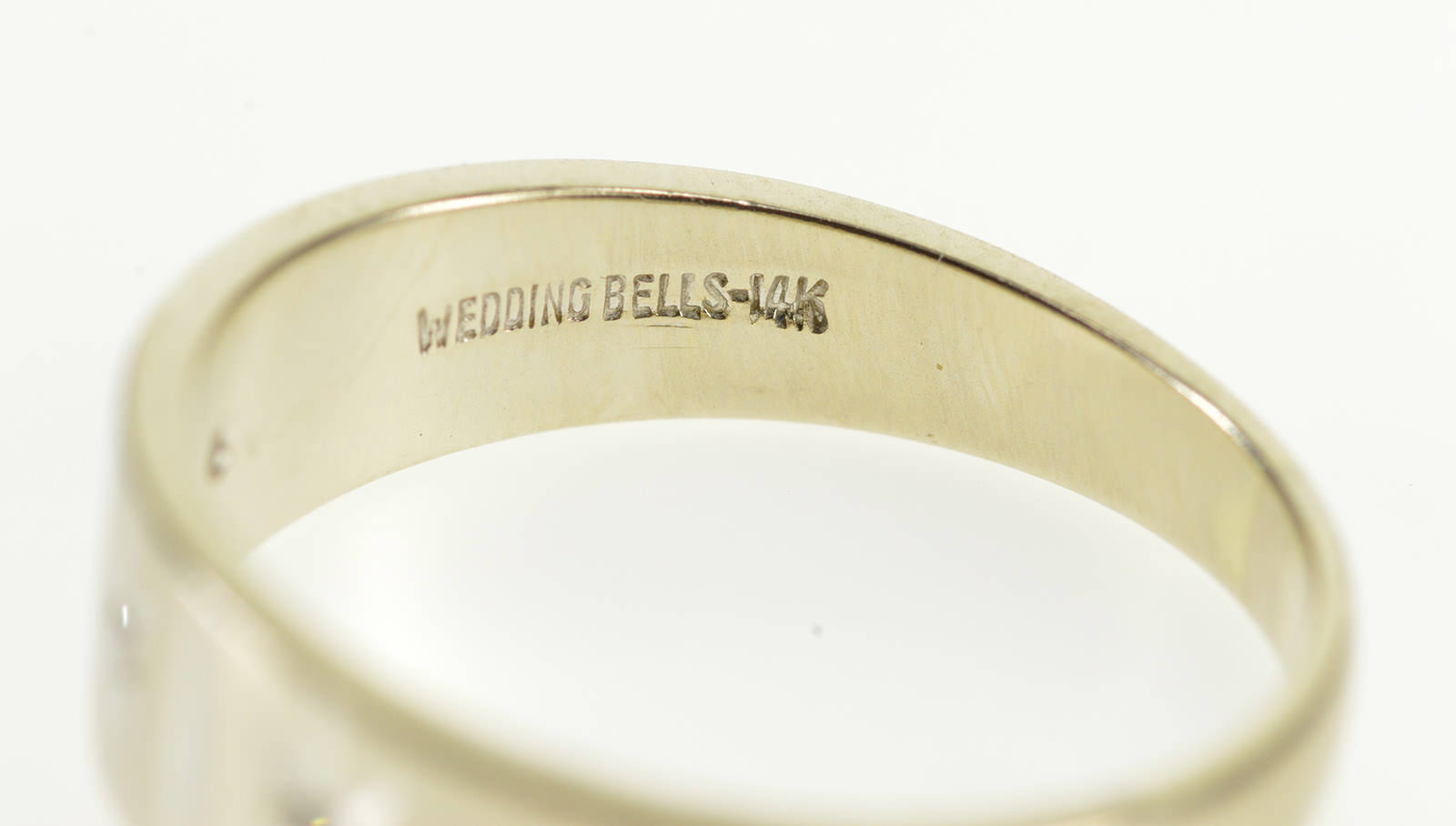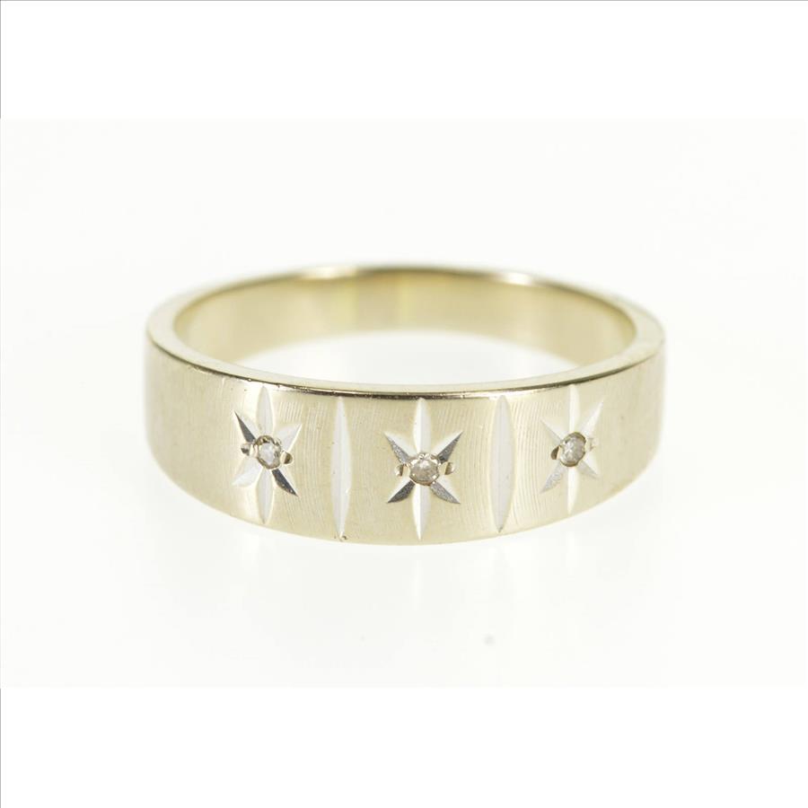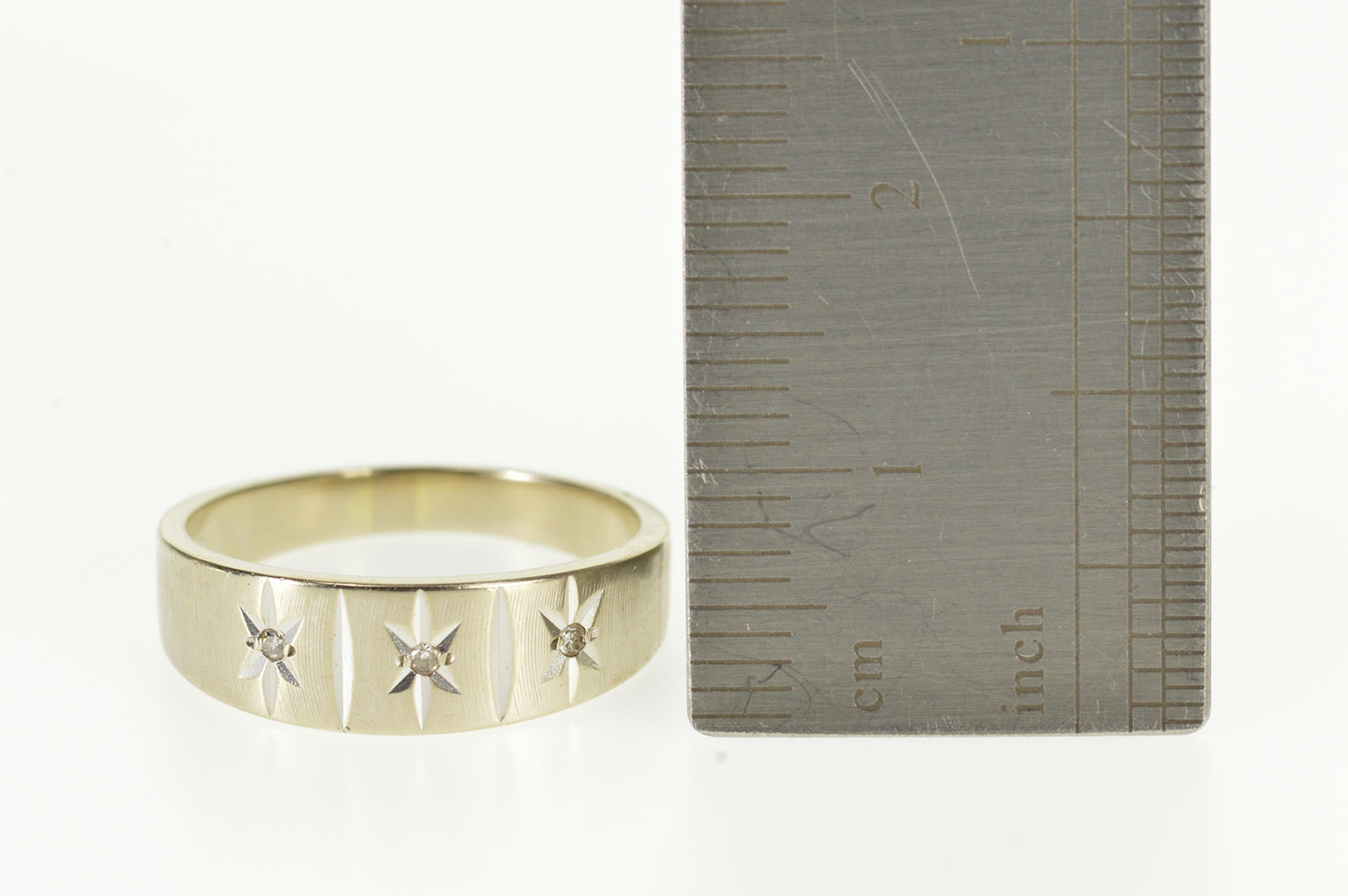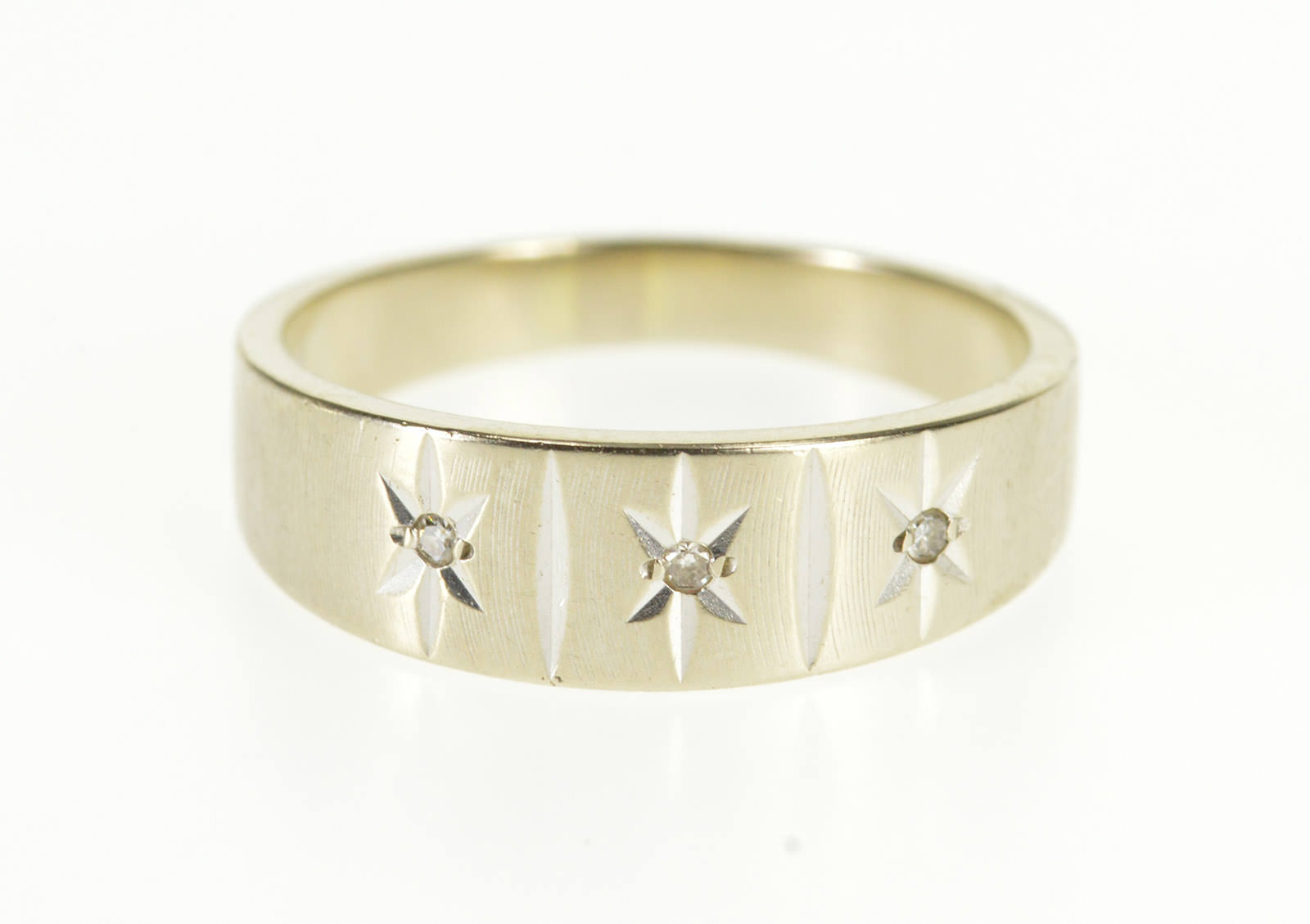 14K Diamond Starburst Pattern Inset Wedding Band White Gold Ring, Size 6.25