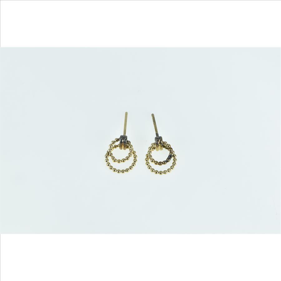 14K Dot Pattern Layered Circle Vintage Stud Yellow Gold Earrings