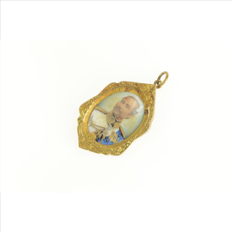 Item:  14K Elaborate Painted Japanese Soldier Engraved Yellow Gold Pendant