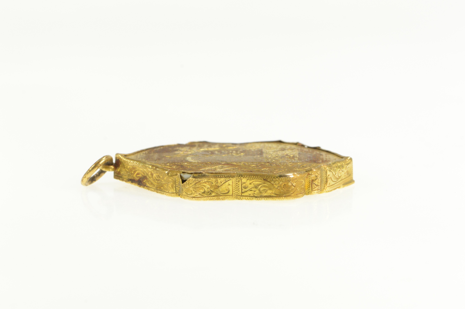 14K Elaborate Painted Japanese Soldier Engraved Yellow Gold Pendant