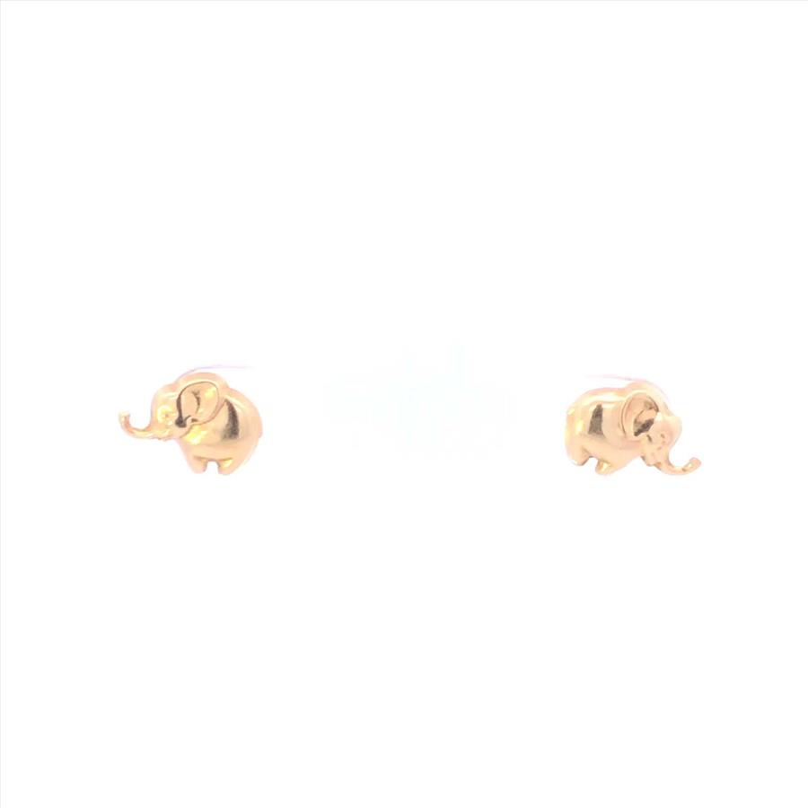 14K Elephant Memory Patience Symbol Stud Yellow Gold Earrings
