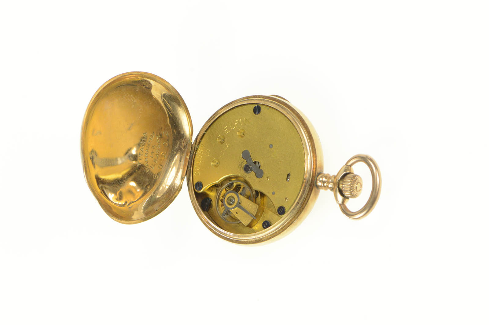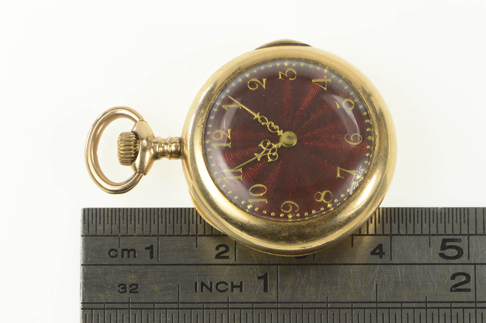 Item:  14k Elfin Red Enamel MMC Monogram Engraved Pocket Watch