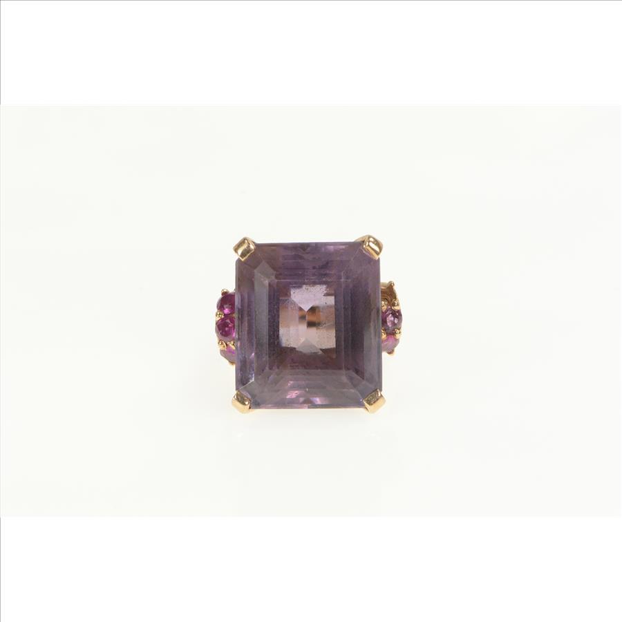 Item:  14K Emerald Amethyst Ruby Retro Cocktail Yellow Gold Ring, Size 5.5