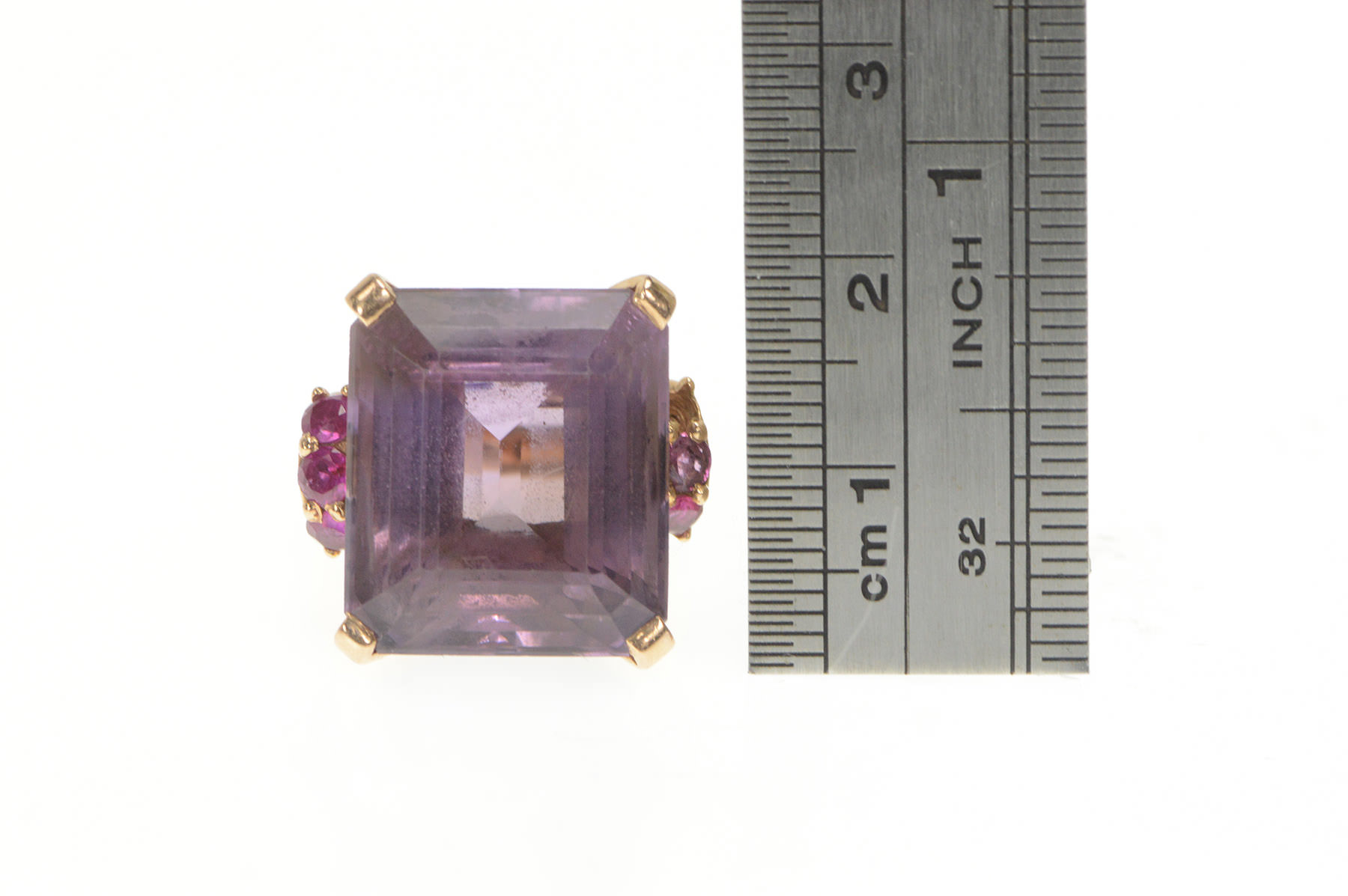 14K Emerald Amethyst Ruby Retro Cocktail Yellow Gold Ring, Size 5.5