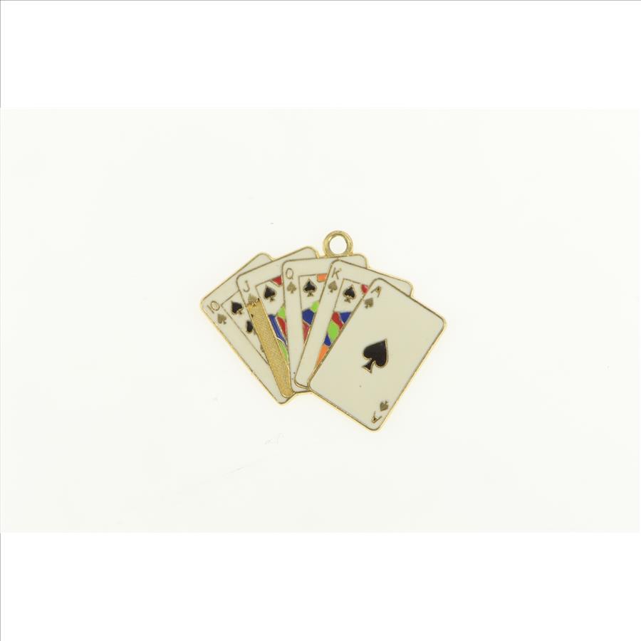 14K Enamel Spades Royal Flush Playing Card Hand Yellow Gold Charm/Pendant