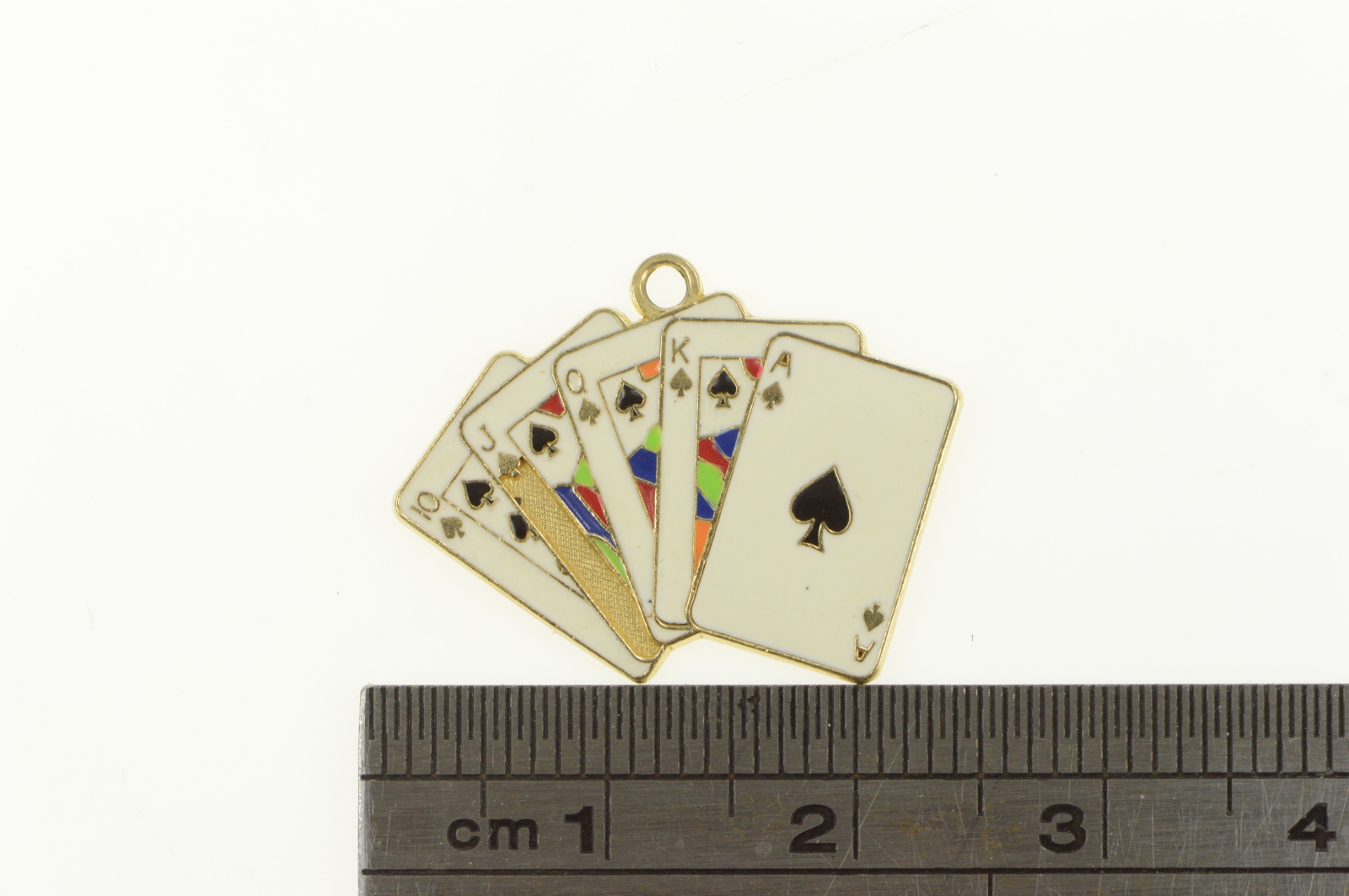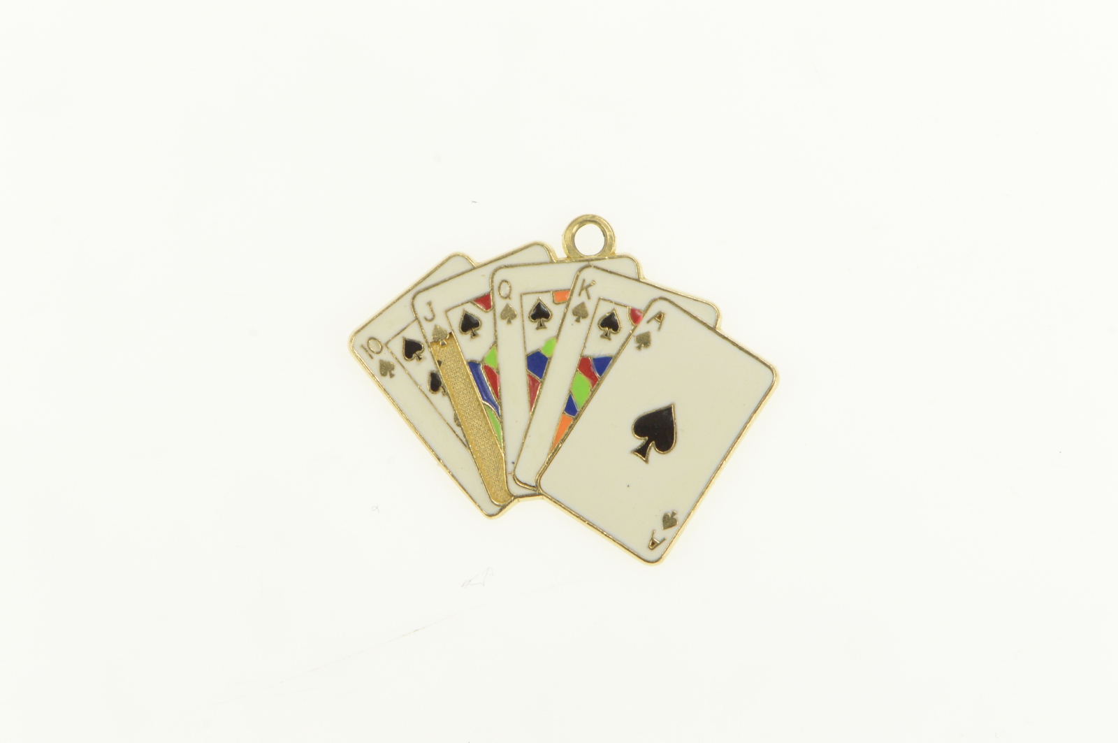 Item:  14K Enamel Spades Royal Flush Playing Card Hand Yellow Gold Charm/Pendant