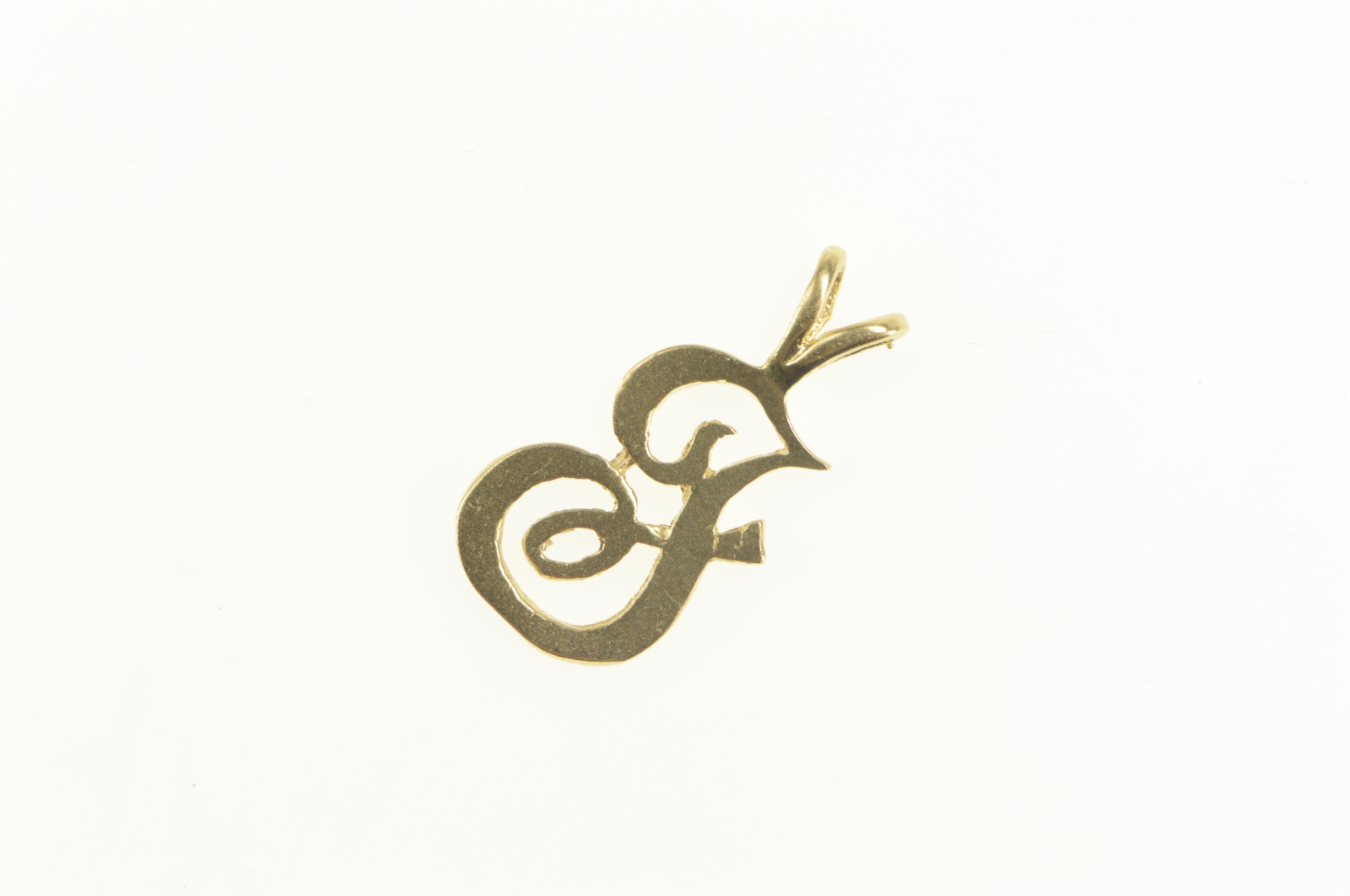 Item:  14K F J Initial Cursive Letter Monogram Yellow Gold Pendant