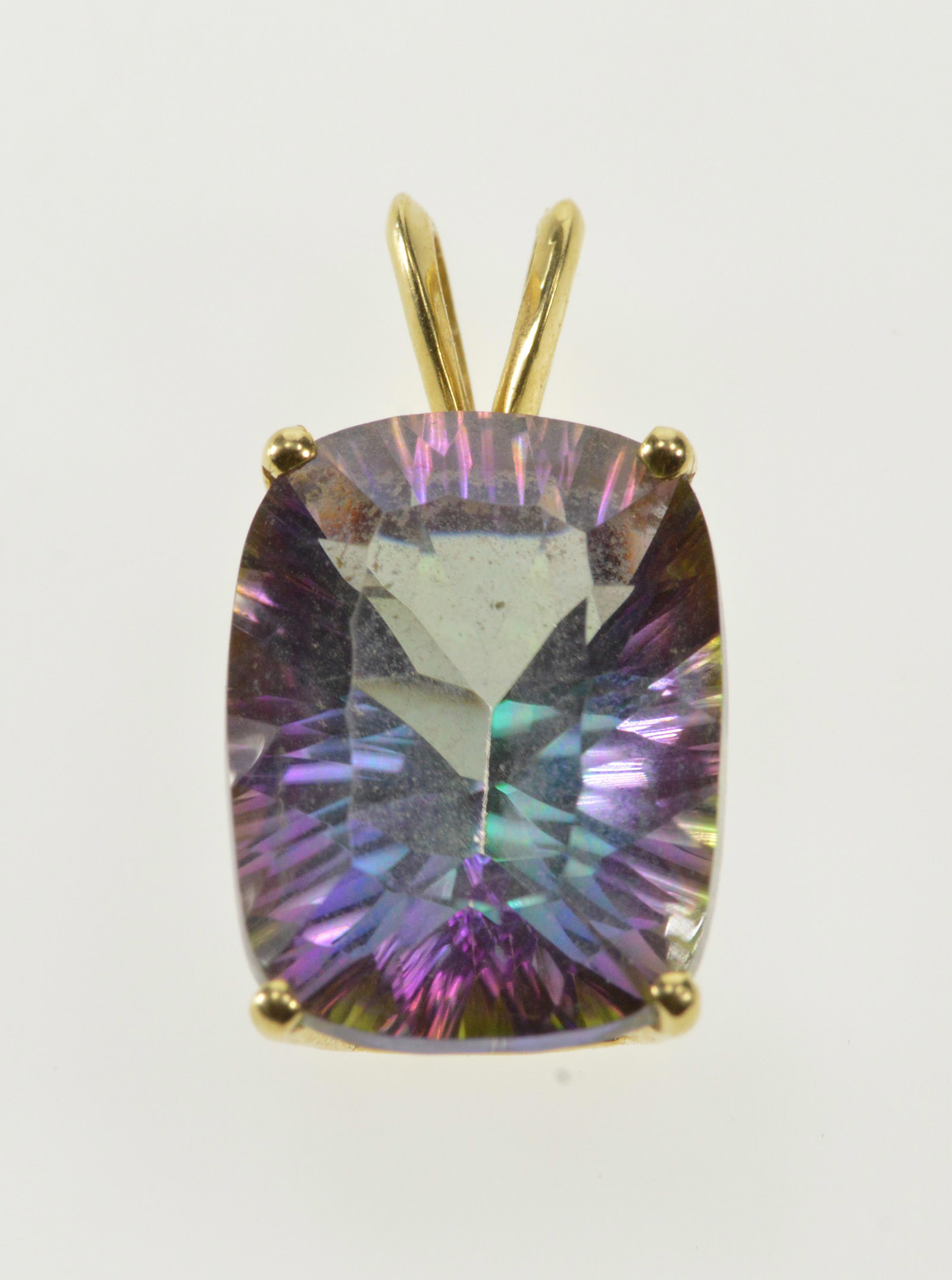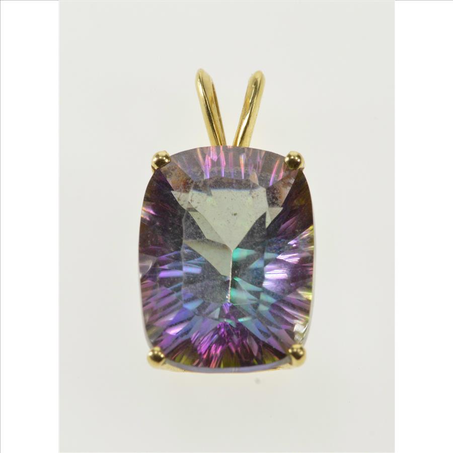 Item:  14K Fantasy Cut Mystic Topaz Solitaire Fashion Yellow Gold Pendant