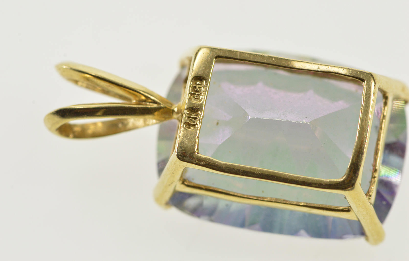14K Fantasy Cut Mystic Topaz Solitaire Fashion Yellow Gold Pendant