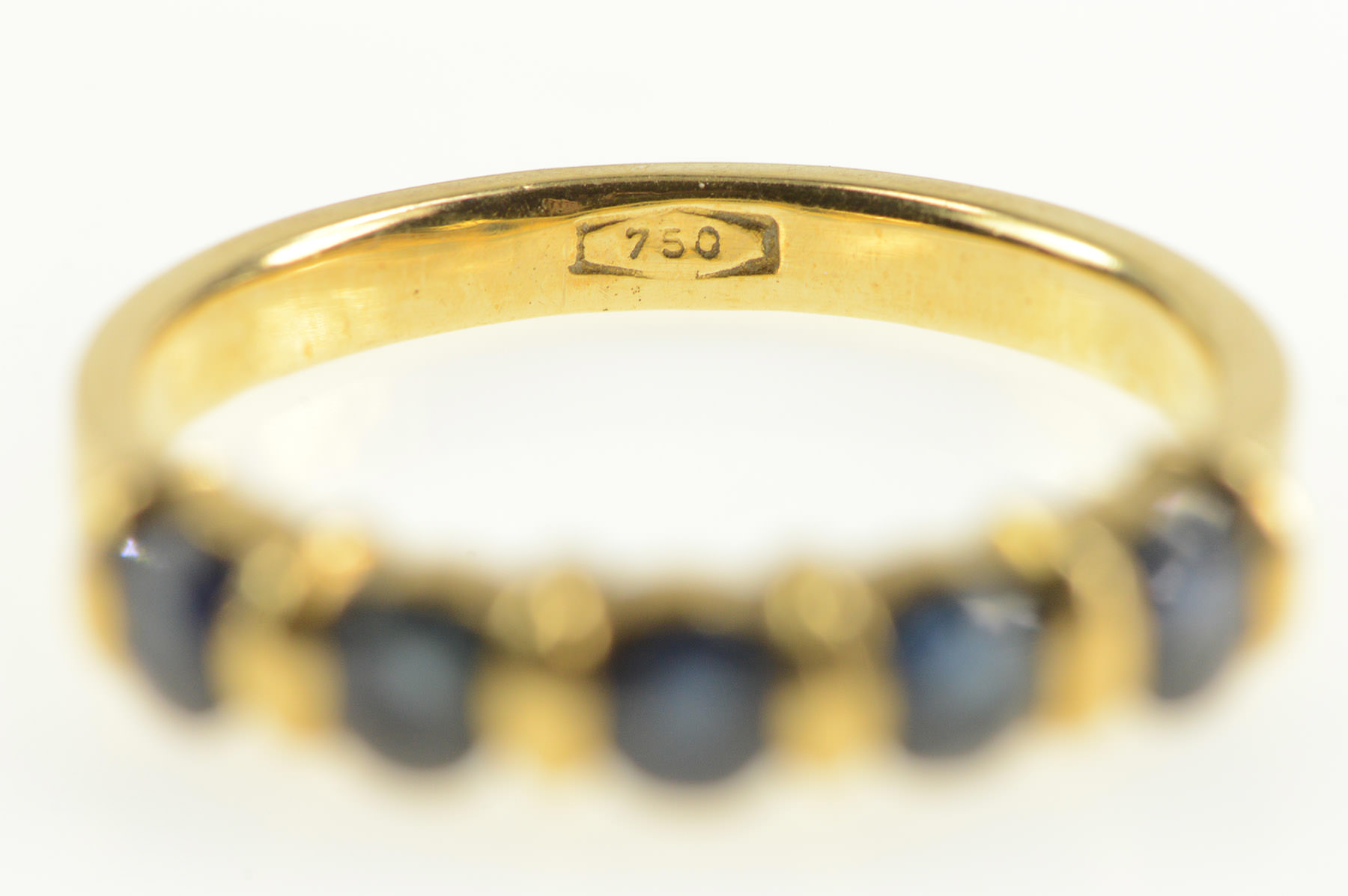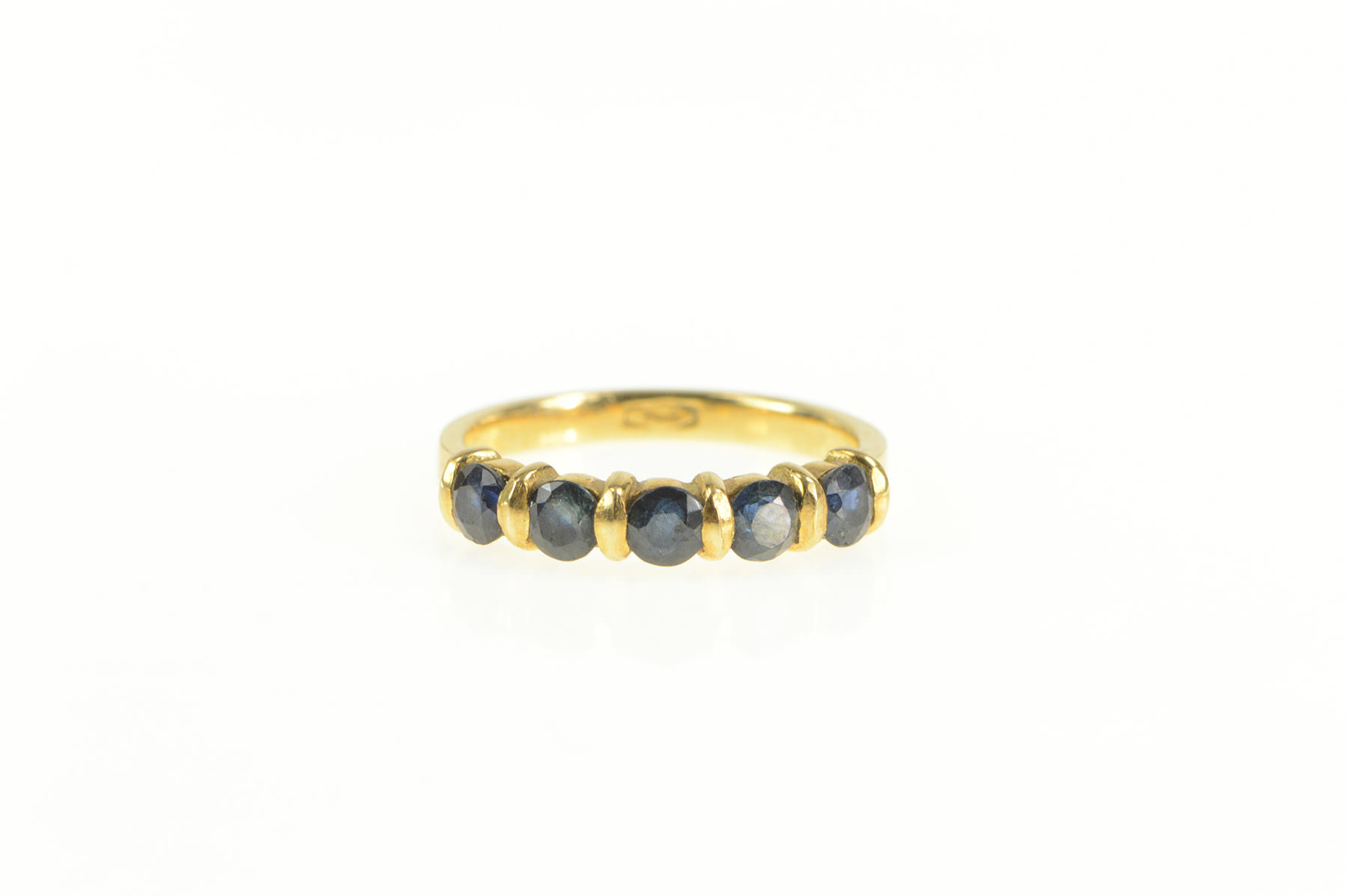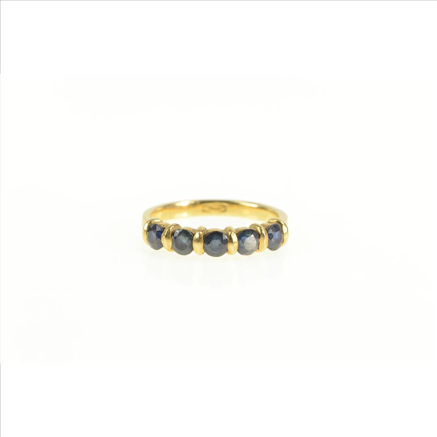Item:  14K Five Stone Natural Sapphire Stackable Band Yellow Gold Ring, Size 6