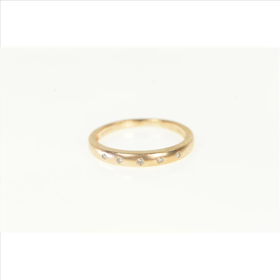 14K Flush Diamond Inset Simple Wedding Band Rose Gold Ring, Size 5.75