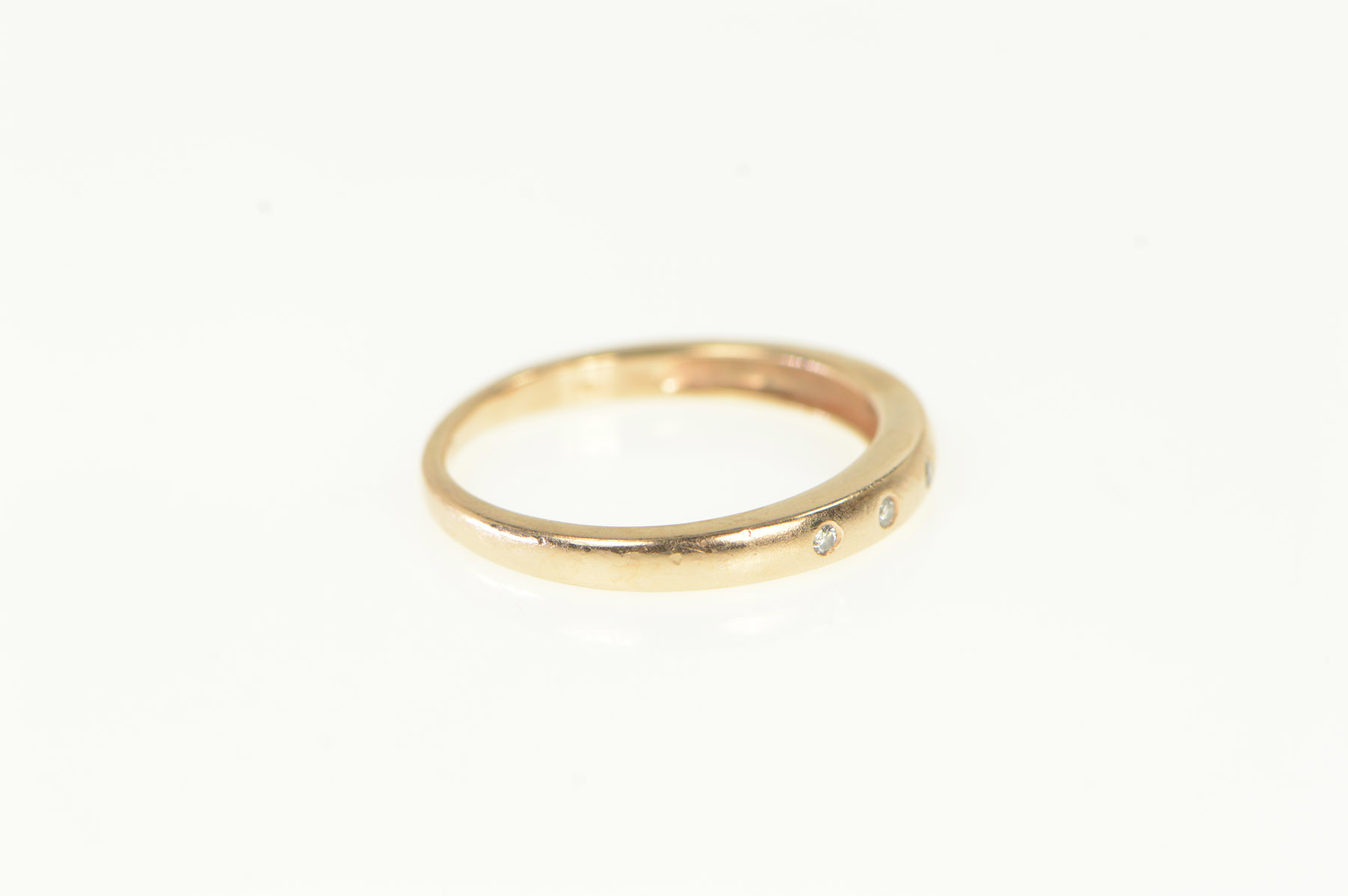 Item:  14K Flush Diamond Inset Simple Wedding Band Rose Gold Ring, Size 5.75