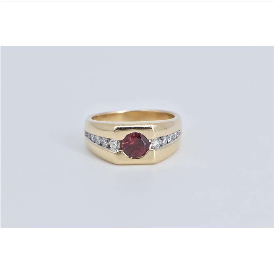 Item:  14K Garnet Diamond Vintage Ornate Statement Yellow Gold Ring, Size 7.5