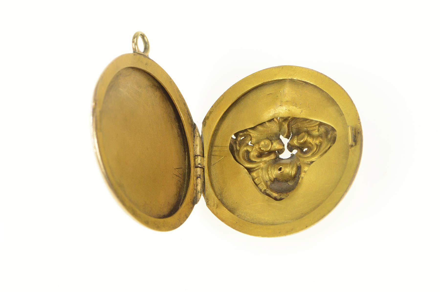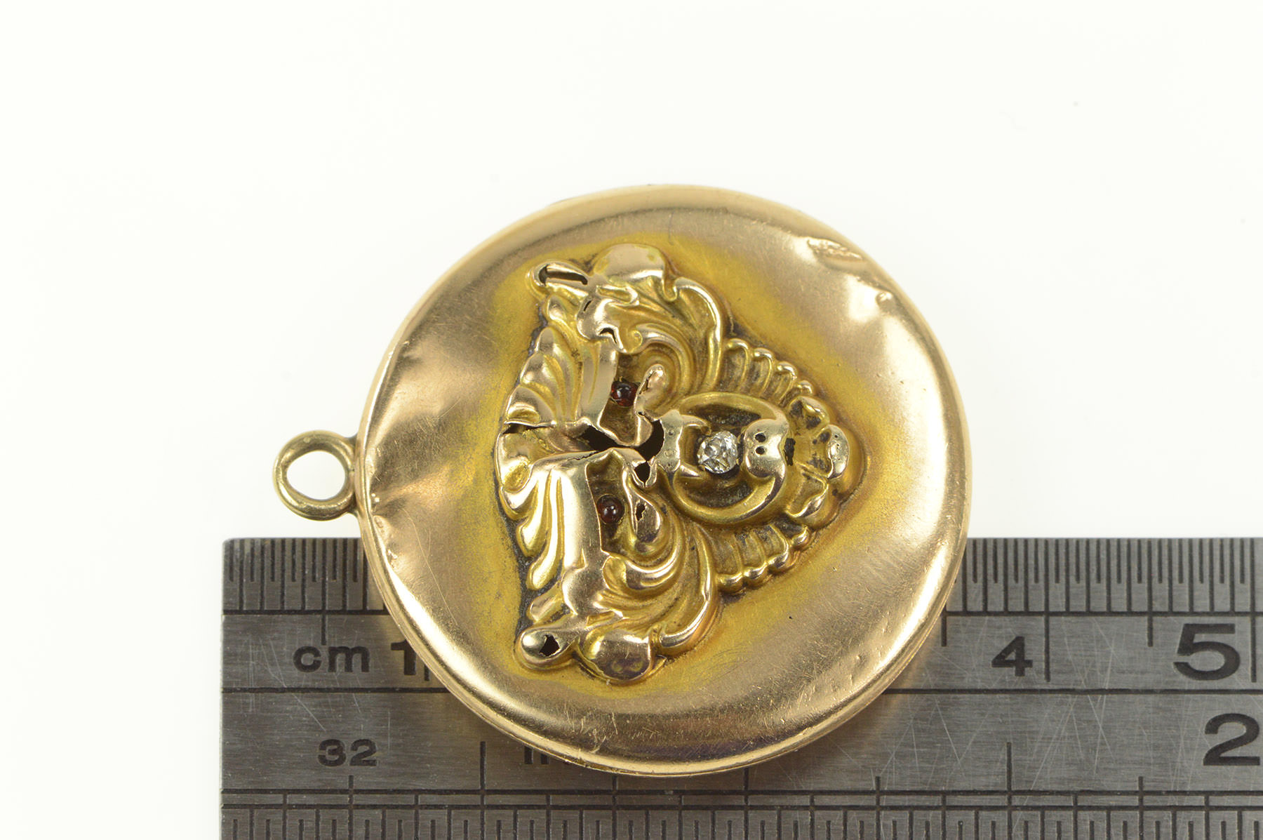 14K Georgian Lion Bear Diamond Photo Locket Yellow Gold Pendant