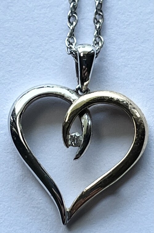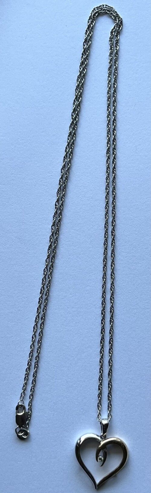 14K Gold/White Gold Heart Pendant on 14K 24" Chain - 4.4 Grams
