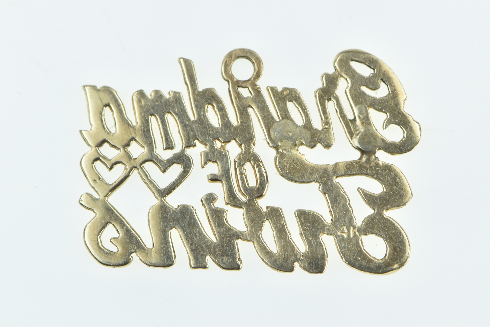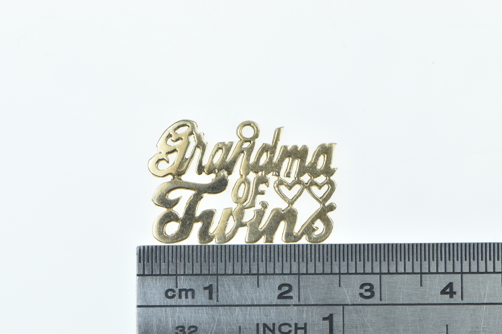 14K Grandma of Twins Word Cut Out Cursive Heart Yellow Gold Charm/Pendant