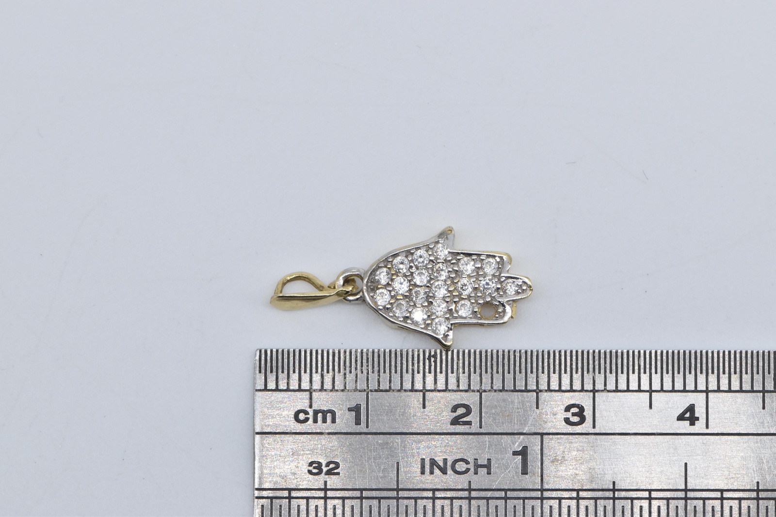 Item:  14K Hamsa Pave Cubic Zirconia Encrusted Yellow Gold Pendant