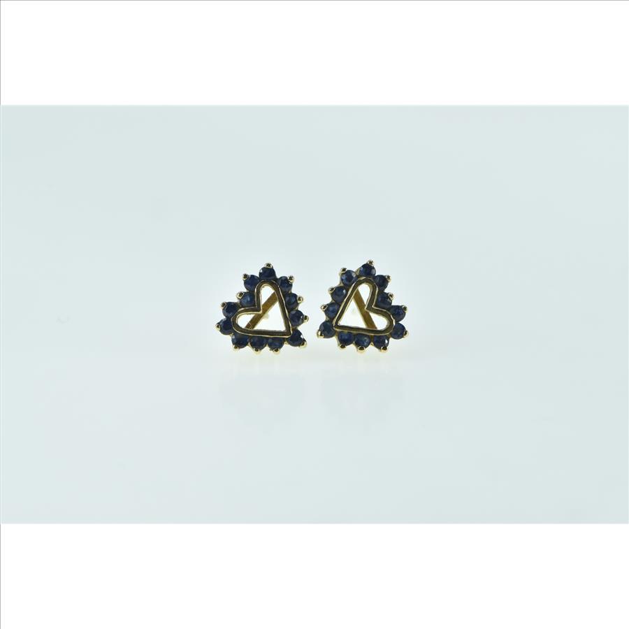 Item:  14K Heart Sapphire Love Symbol Stud Yellow Gold Earrings