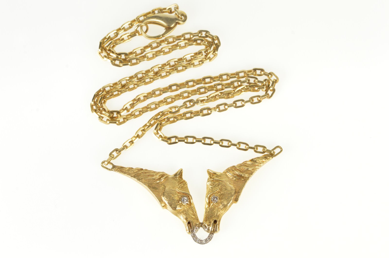 Item:  14K Kamm Gallery Diamond 3D Horse Chain Yellow Gold Necklace 20.5"