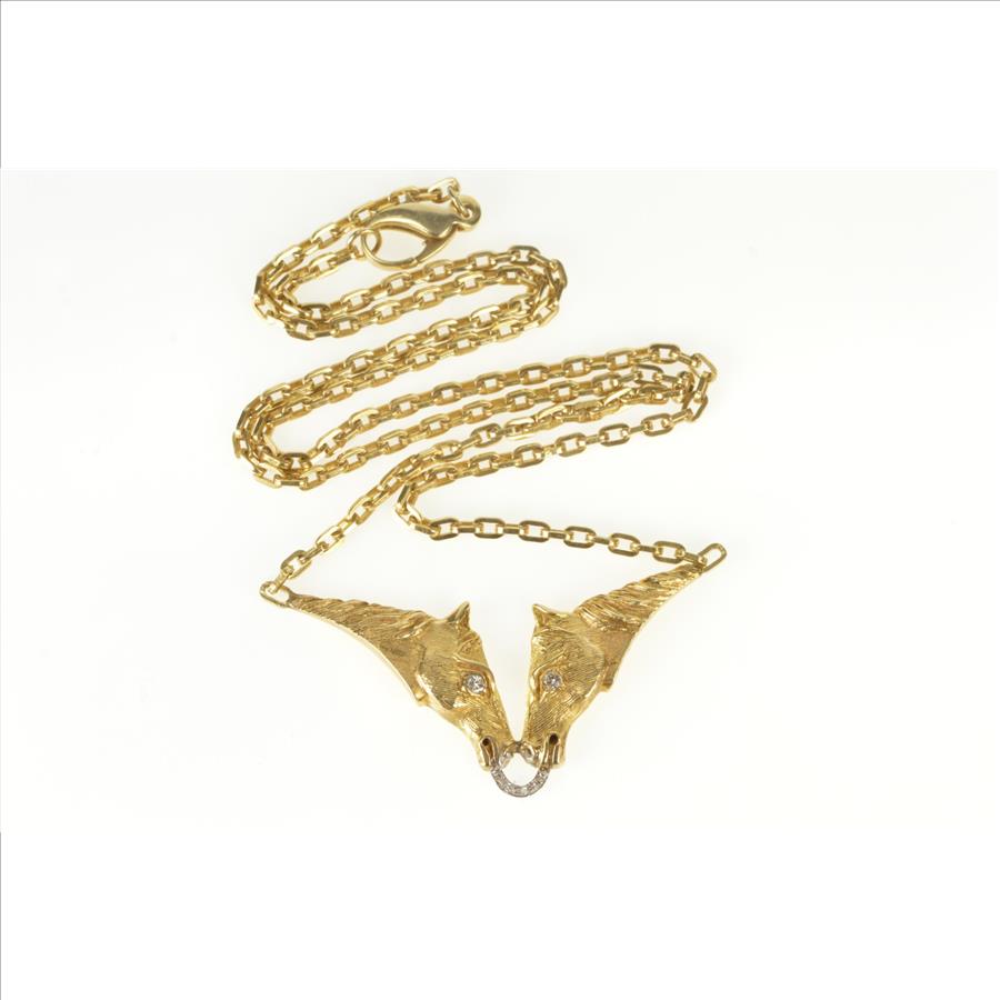 Item:  14K Kamm Gallery Diamond 3D Horse Chain Yellow Gold Necklace 20.5"