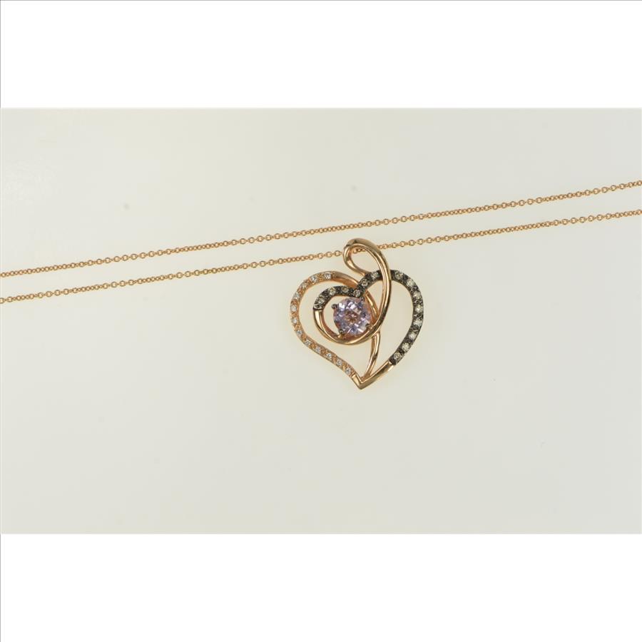 Item:  14K LeVian Amethyst Diamond Heart Ltd. Edit. Yellow Gold Necklace 18"