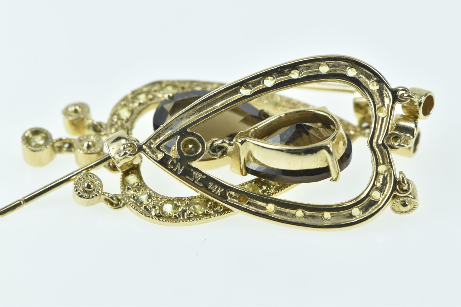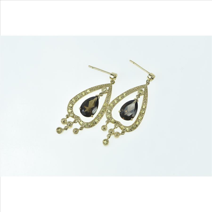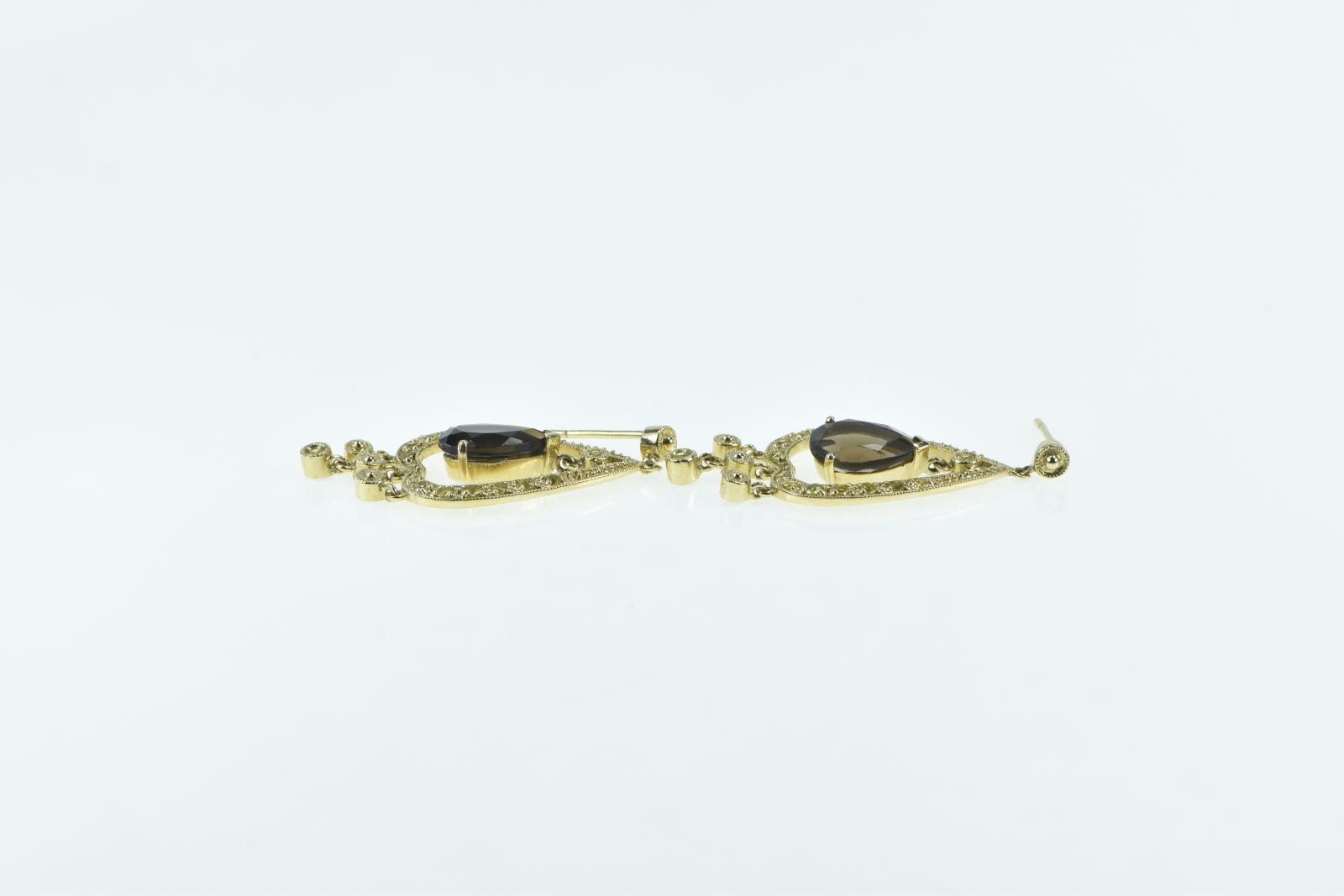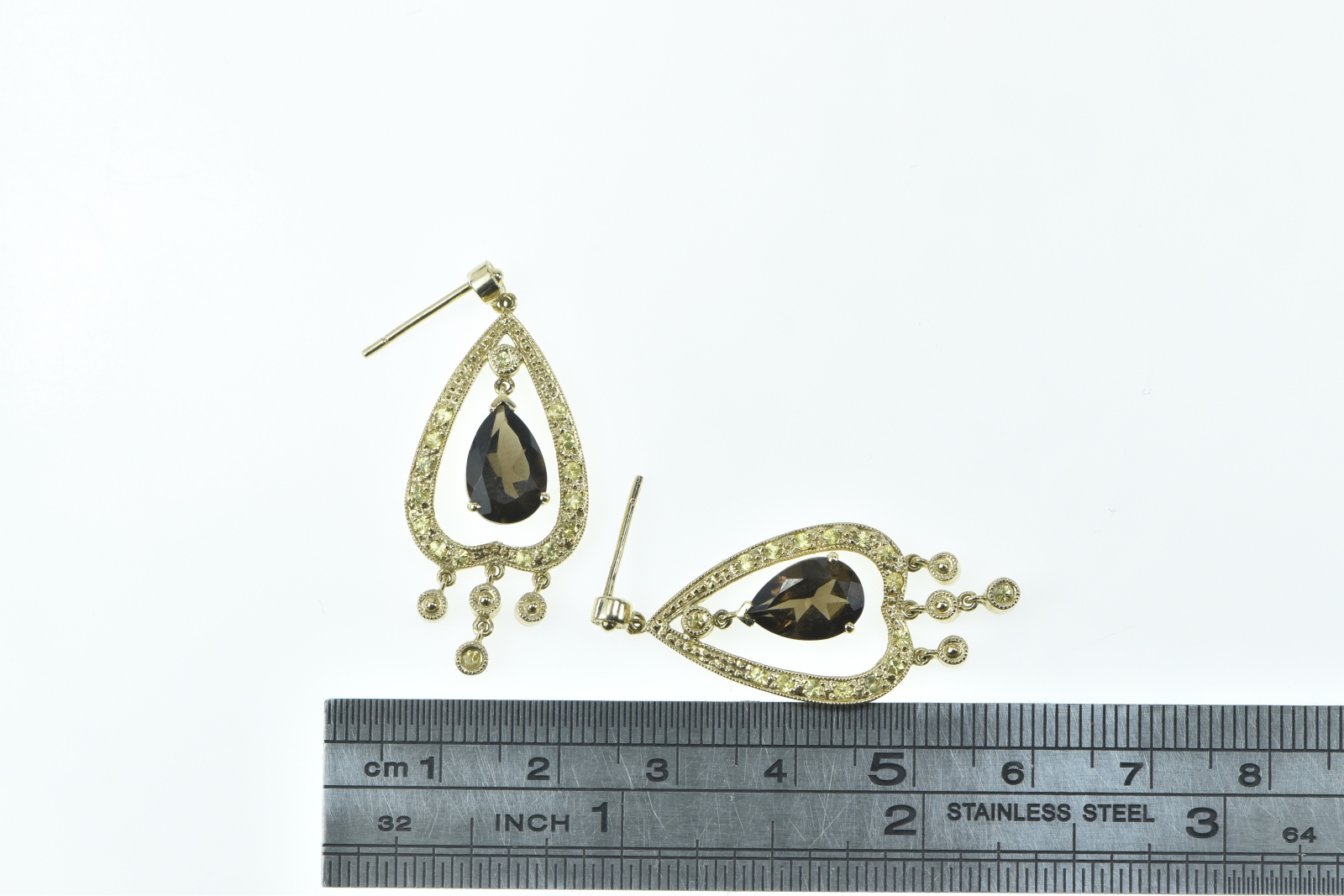 14K LeVian Smoky Quartz Yellow Sapphire Dangle Yellow Gold Earrings