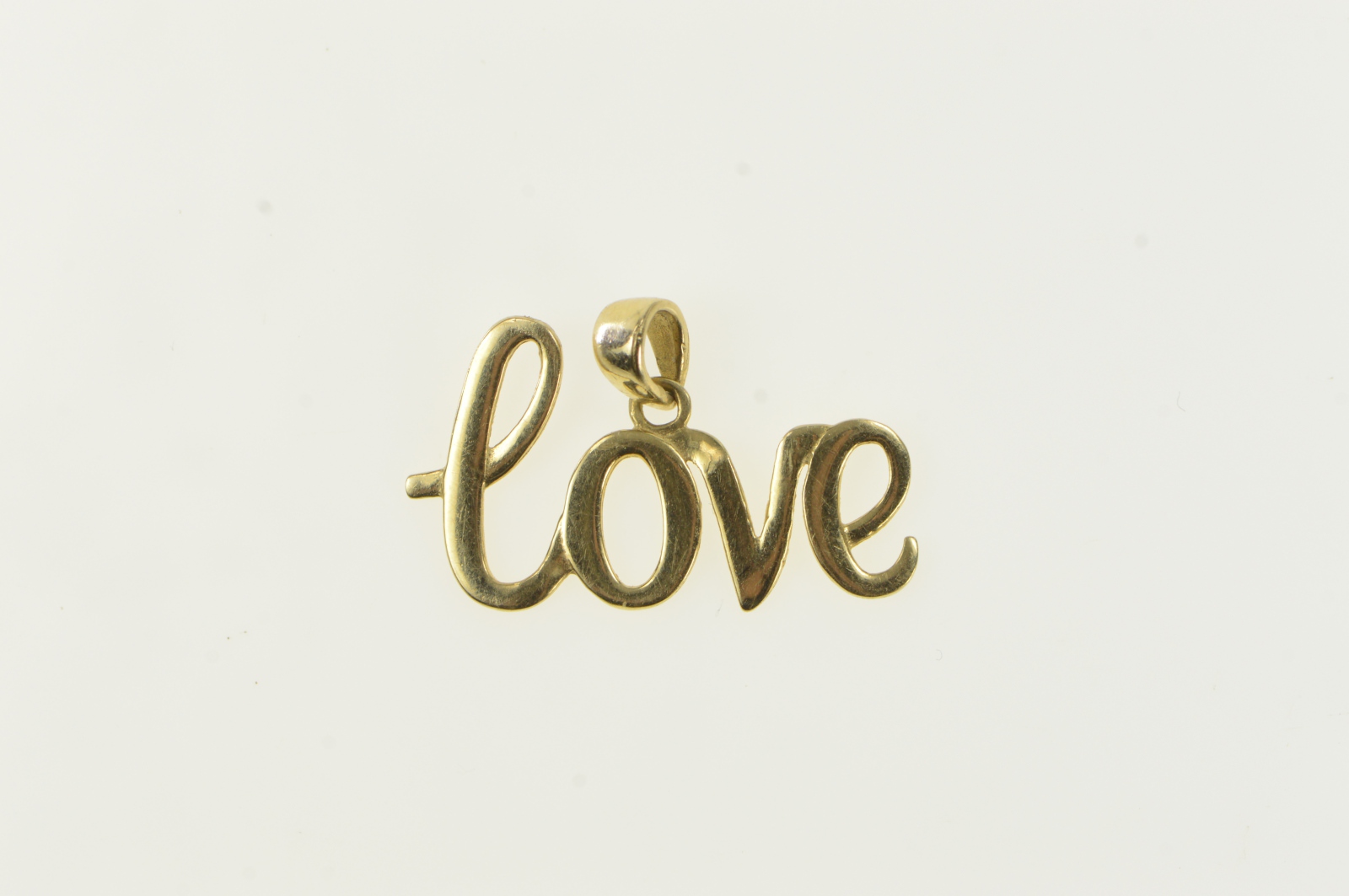 Item:  14K Love Cursive Word Cut Out Message Yellow Gold Charm/Pendant