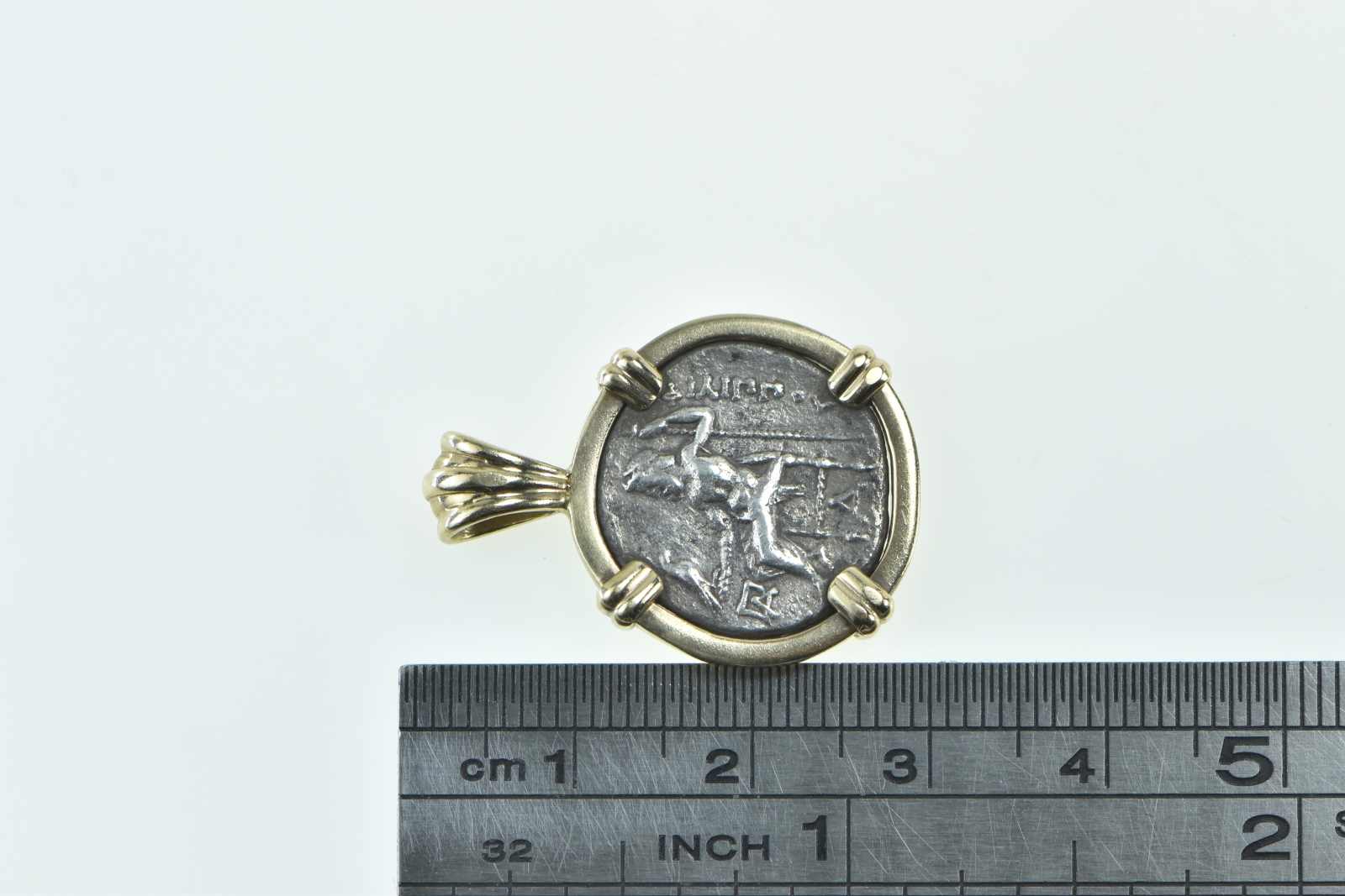 Item:  14K Macedonian 323 BC Philip III Drachm Ancient Coin Yellow Gold Pendant