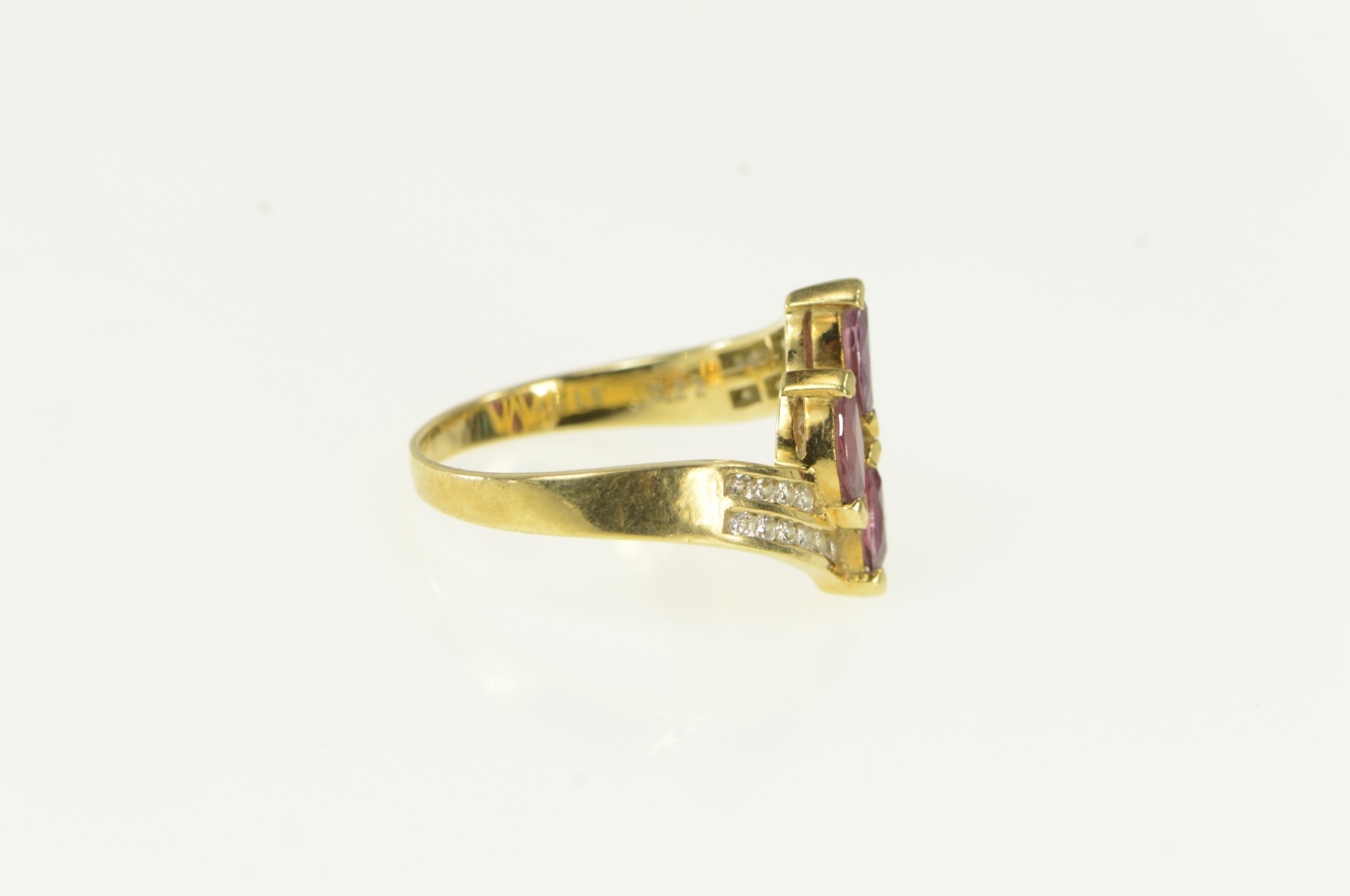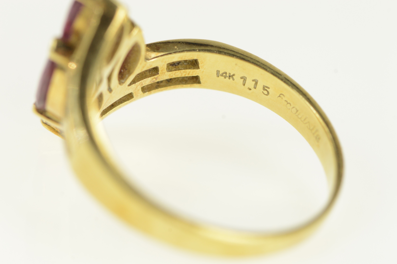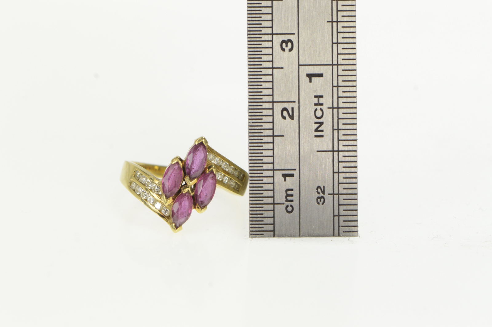 14K Marquise Natural Ruby Diamond Bypass Yellow Gold Ring, Size 6.75