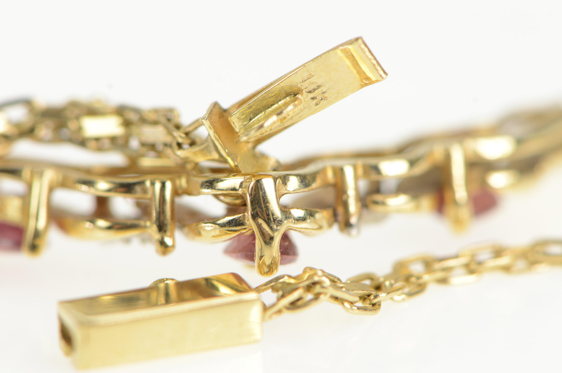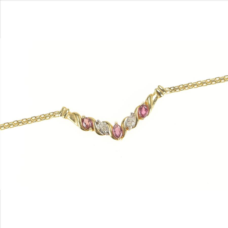 Item:  14K Marquise Ruby Diamond Chevron Square Chain Yellow Gold Necklace 17.25"