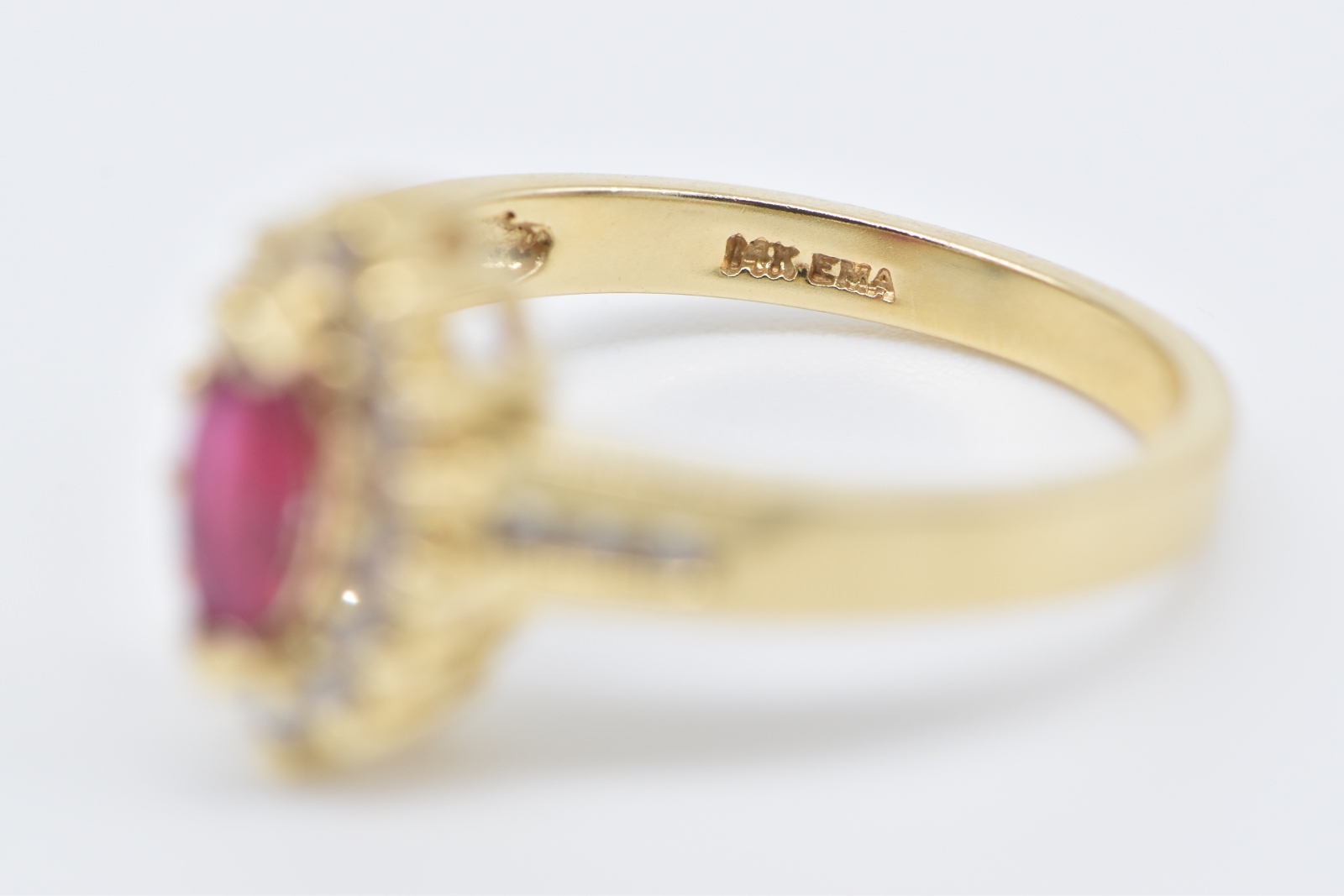 14K Marquise Ruby Diamond Halo Engagement Yellow Gold Ring, Size 7