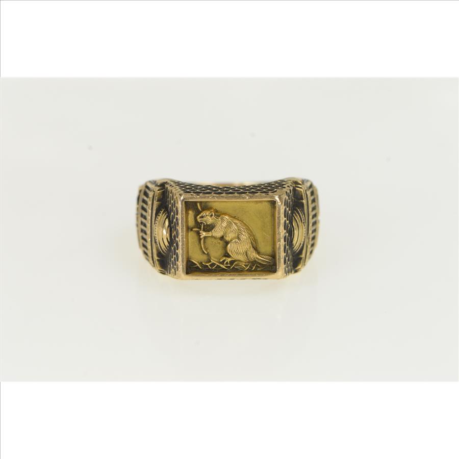 14K MIT Class of 1966 Beaver Ornate Yellow Gold Ring, Size 10.75