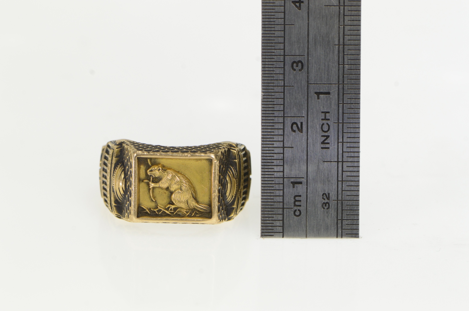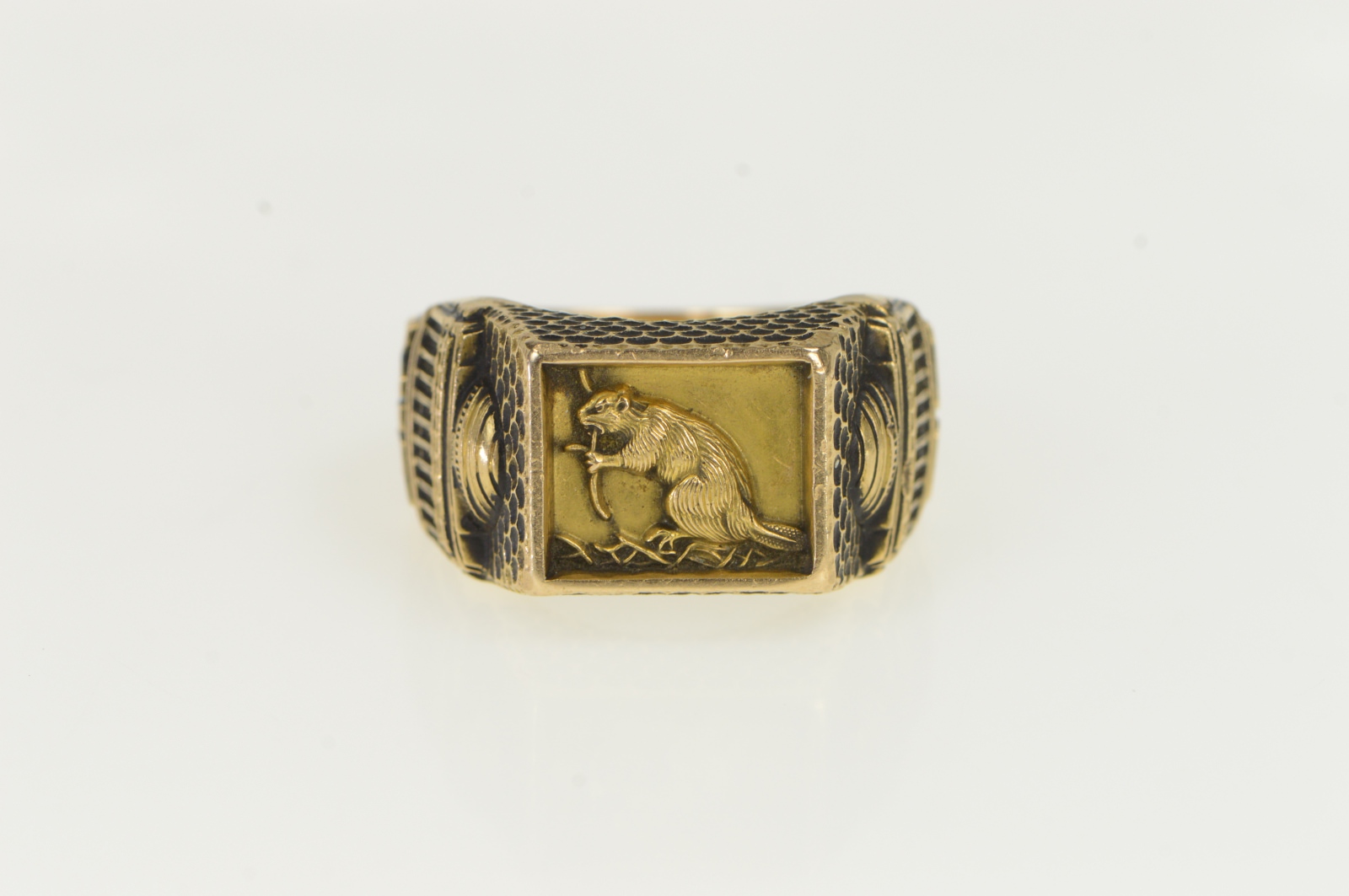 Item:  14K MIT Class of 1966 Beaver Ornate Yellow Gold Ring, Size 10.75