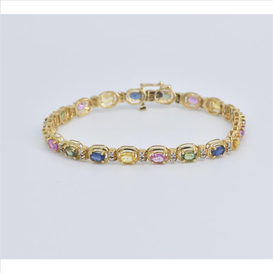 Item:  14K Multi Color Sapphire Natural Diamond Tennis Yellow Gold Bracelet 7.25"