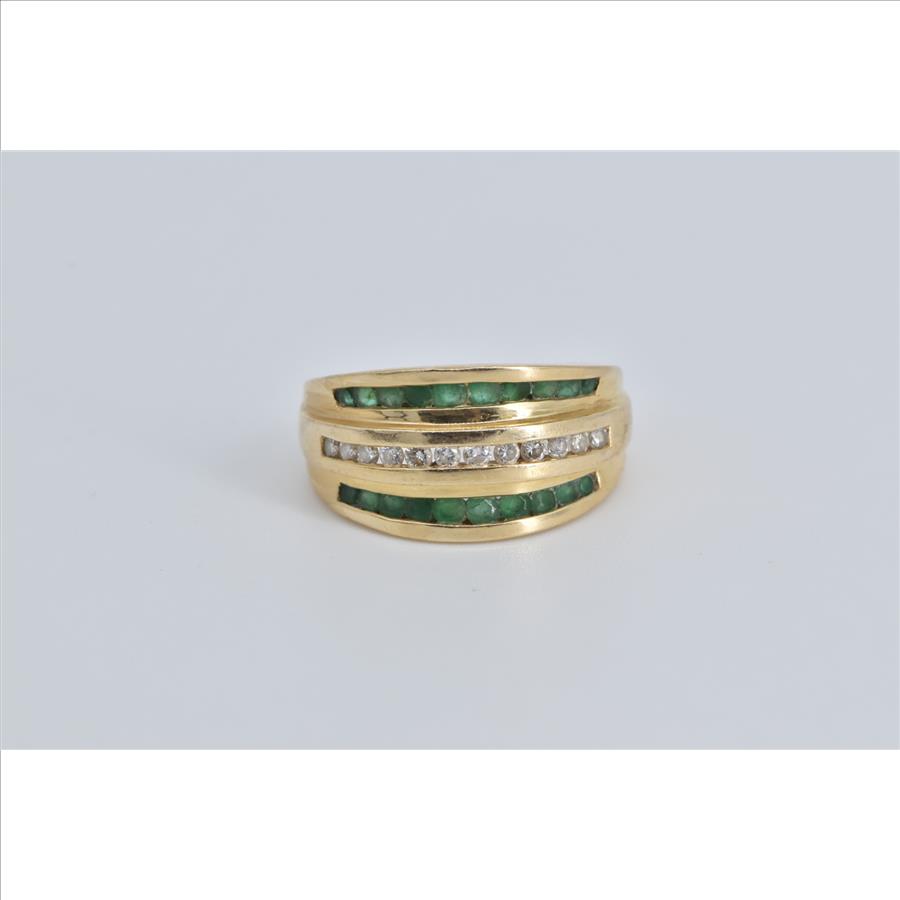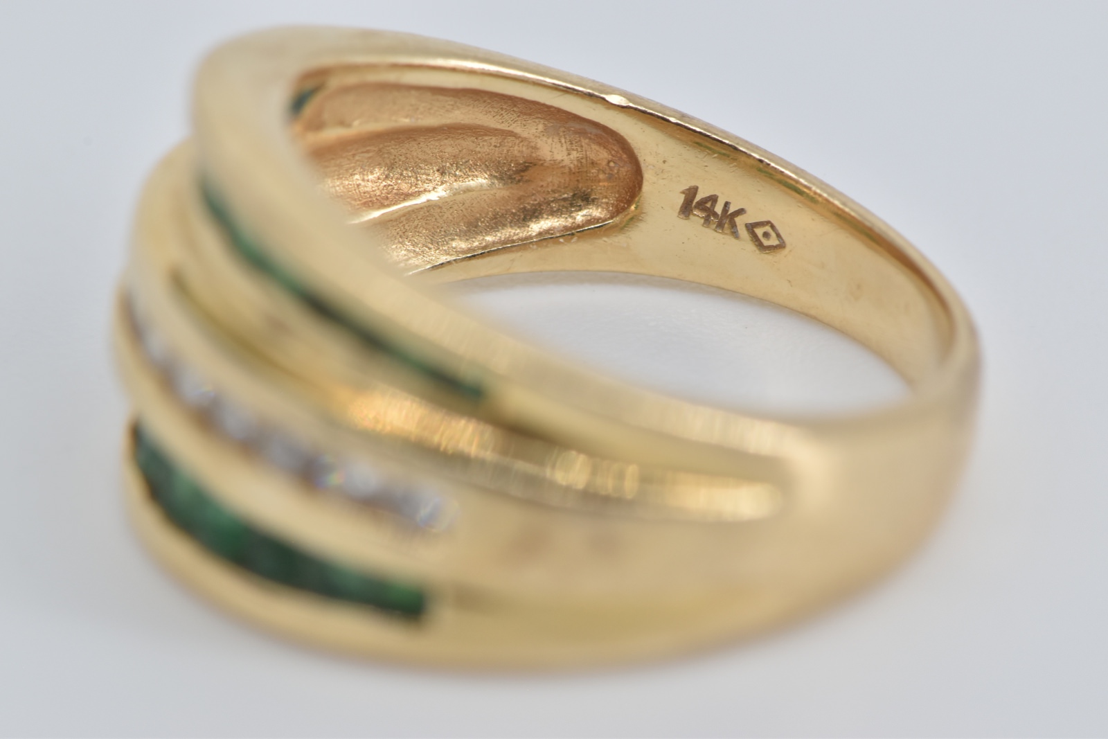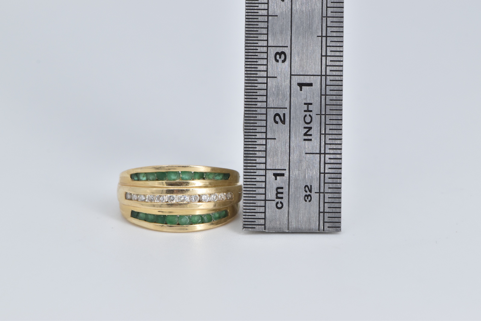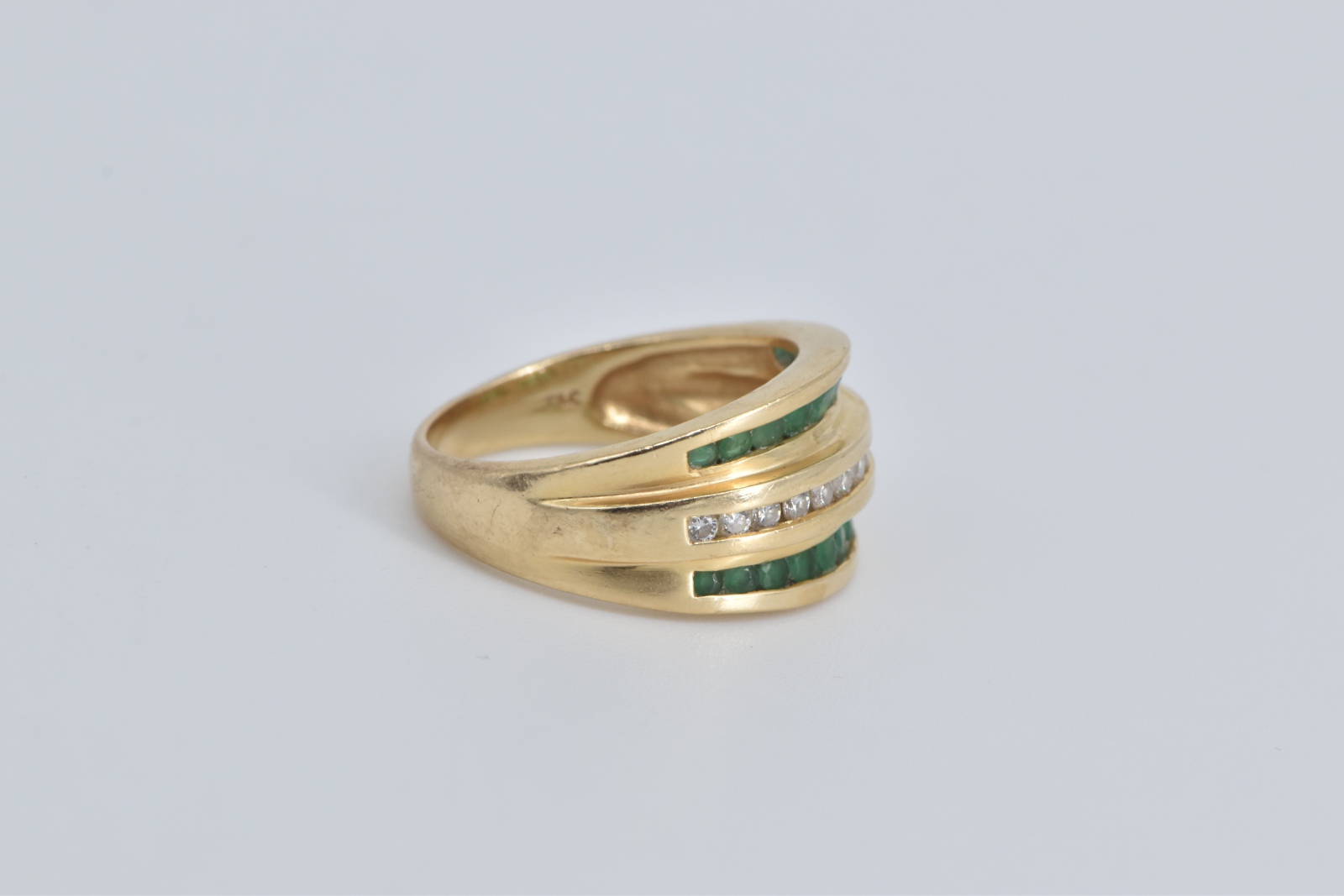14K Natural Diamond Emerald Striped Contour Yellow Gold Ring, Size 6.75