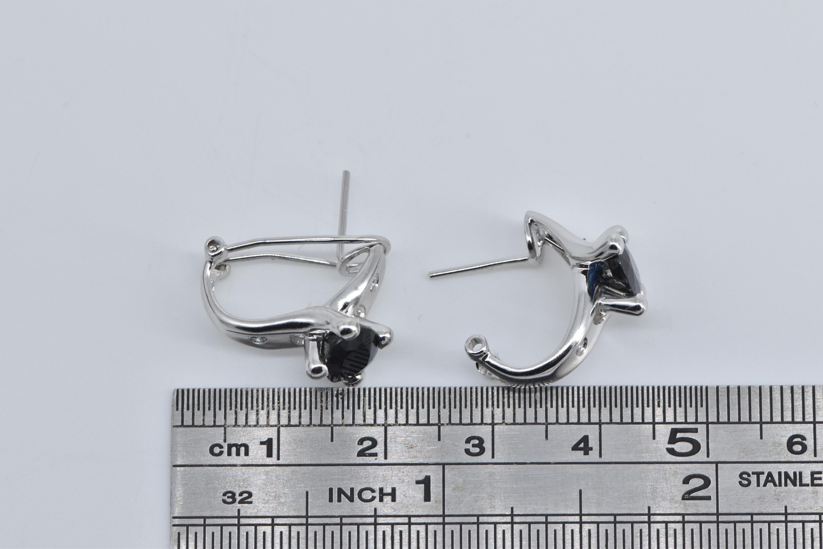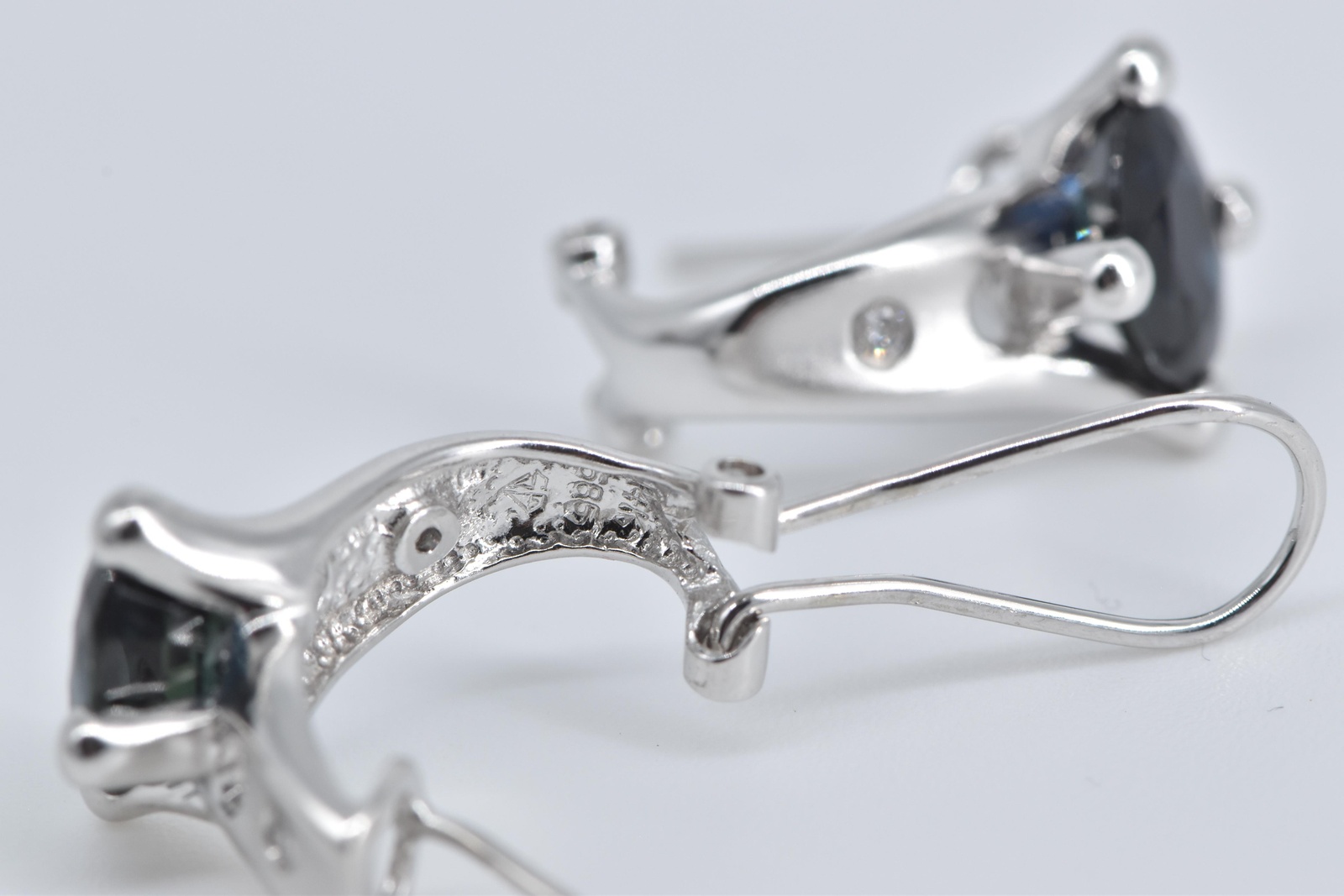 Item:  14K Natural Sapphire Natural Diamond French Clip White Gold Earring
