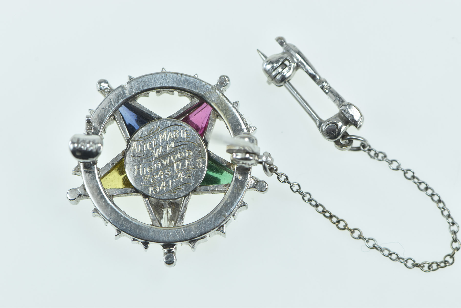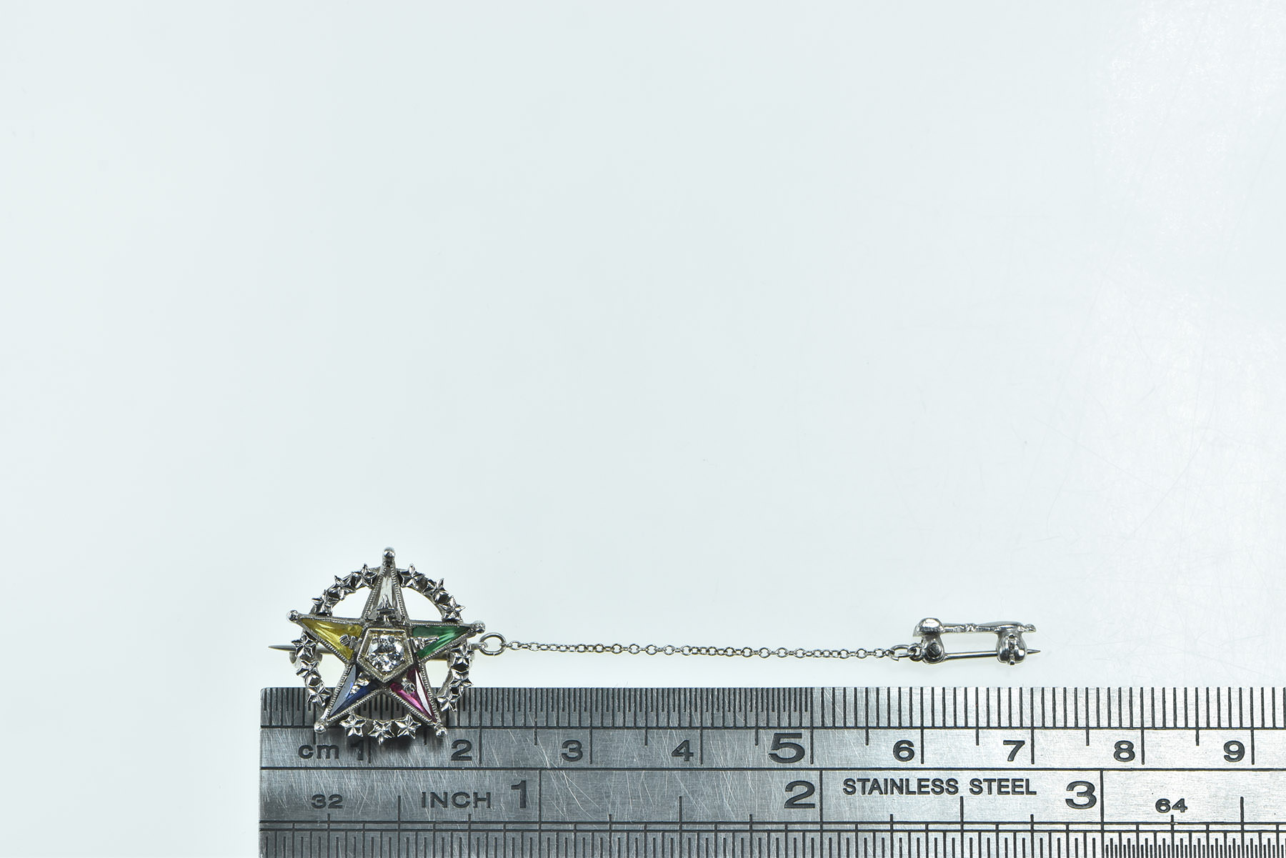 Item:  14K Order of the Eastern Star Diamond Lapel White Gold Pin/Brooch