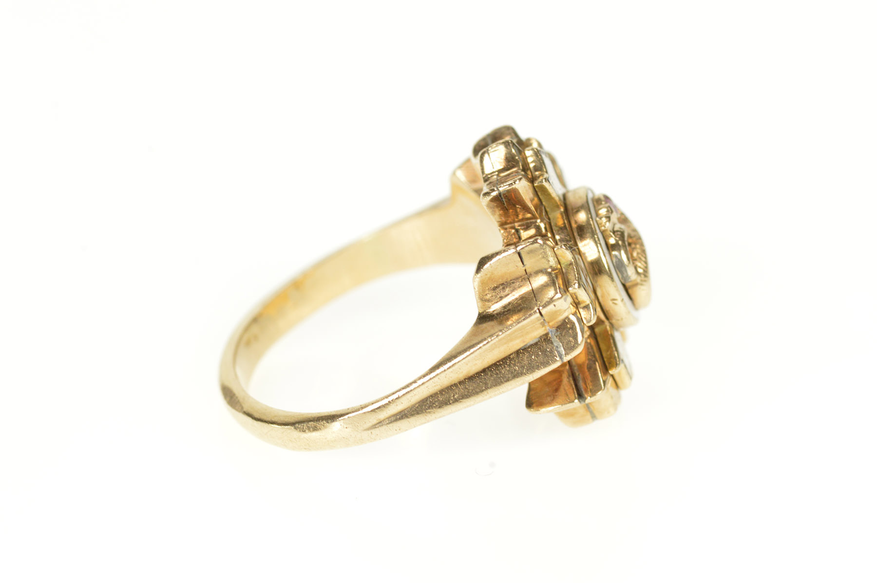 14K Ornate Sigma Nu Fraternity Snake Star Enamel Yellow Gold Ring, Size 4