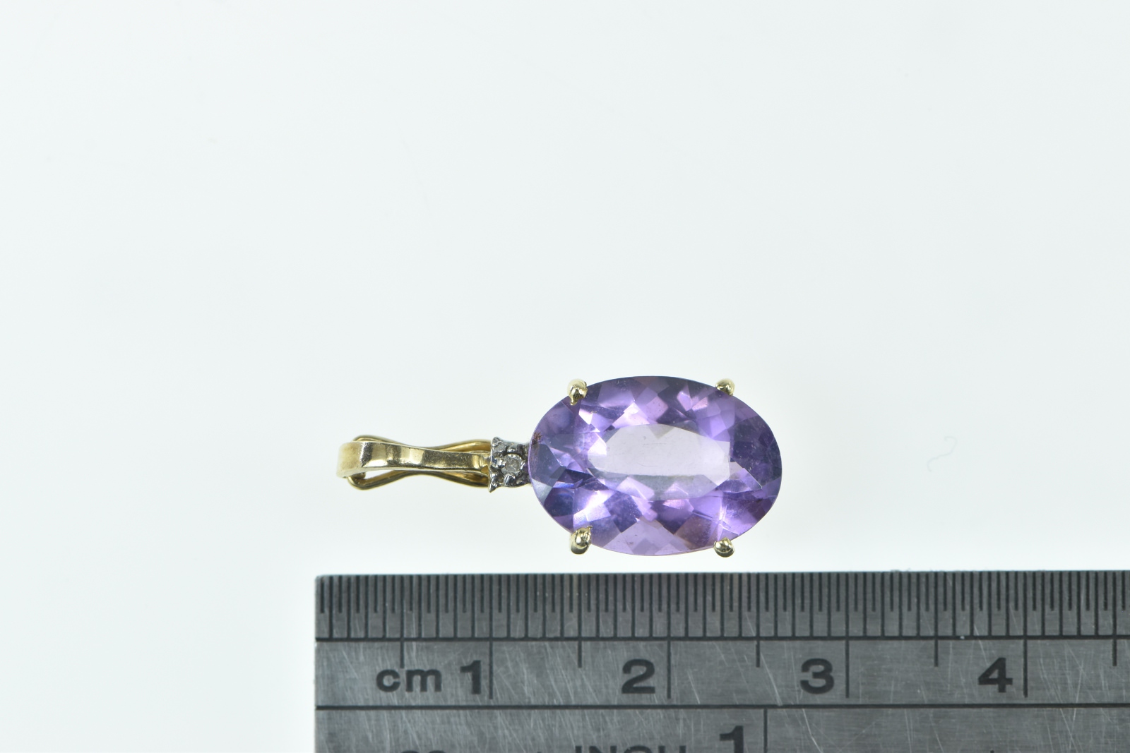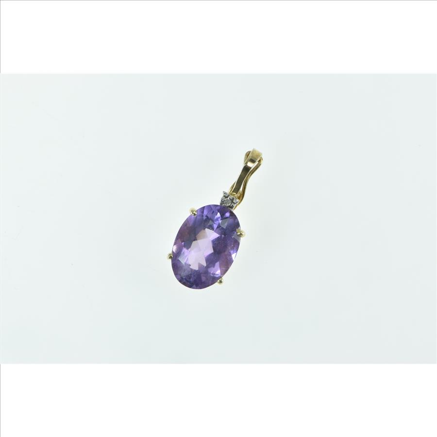 Item:  14K Oval Amethyst Diamond Accent Classic Yellow Gold Pendant