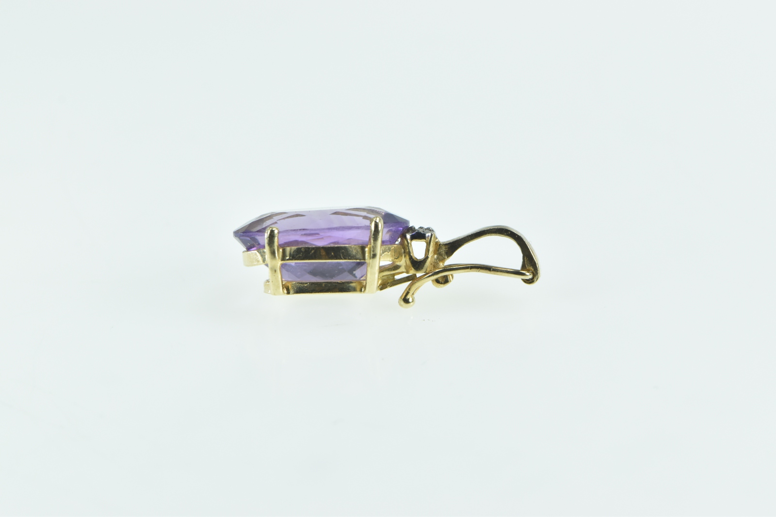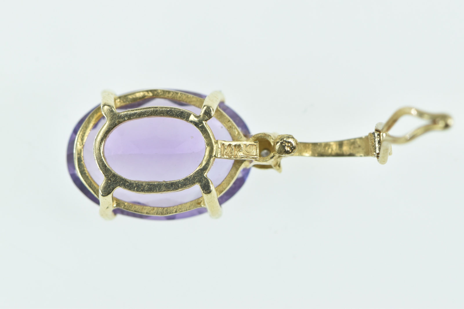 14K Oval Amethyst Diamond Accent Classic Yellow Gold Pendant