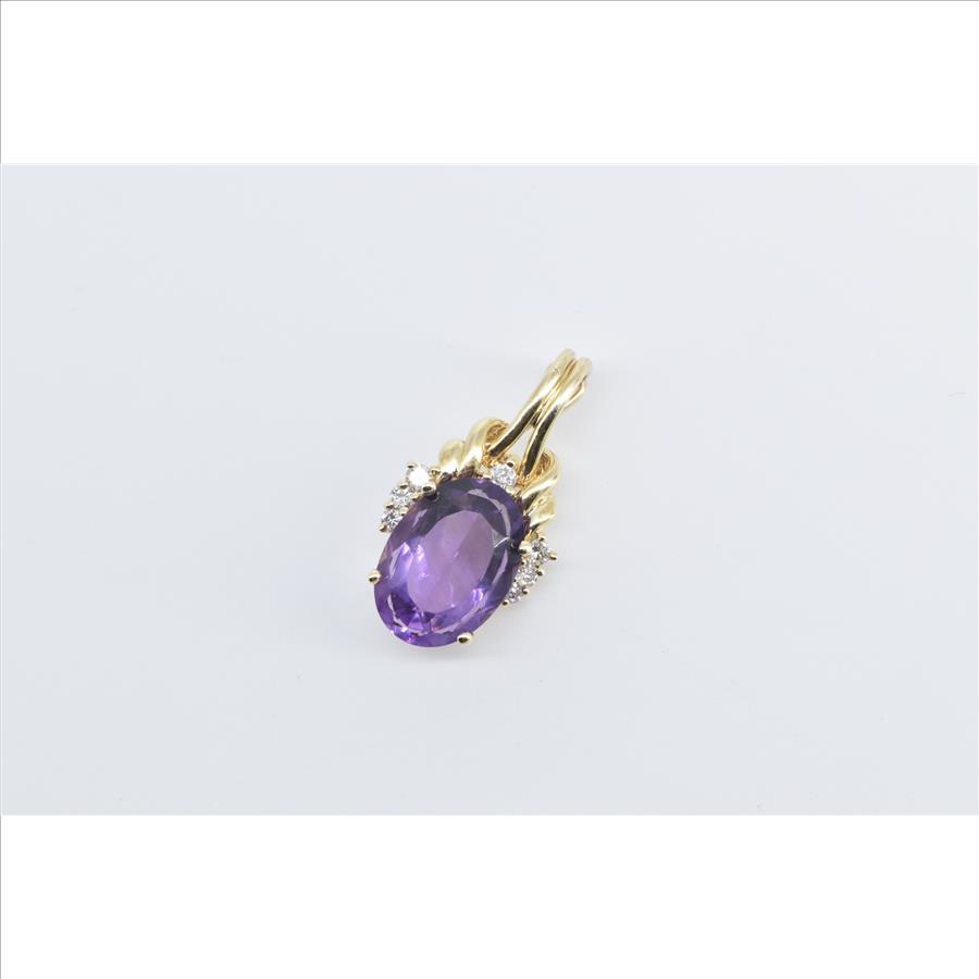 Item:  14K Oval Amethyst Diamond Accent Vintage Yellow Gold Pendant