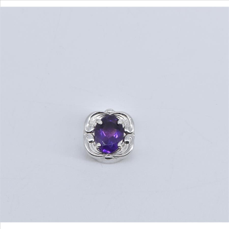 Item:  14K Oval Amethyst Vintage Ornate Slide Bracelet White Gold Charm/Pendant