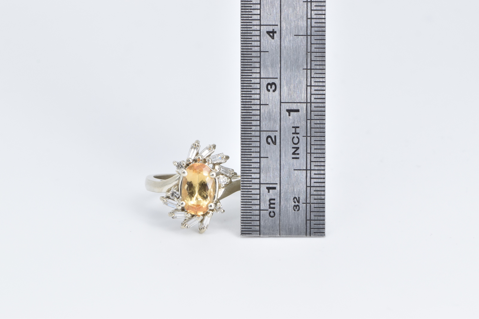 14K Oval Citrine Baguette Diamond Halo Statement White Gold Ring, Size 8.5