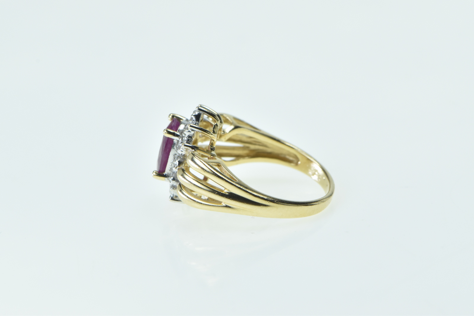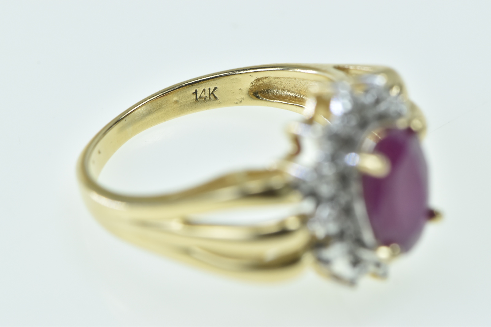 14K Oval Natural Ruby Diamond Halo Statement Yellow Gold Ring, Size 4.5