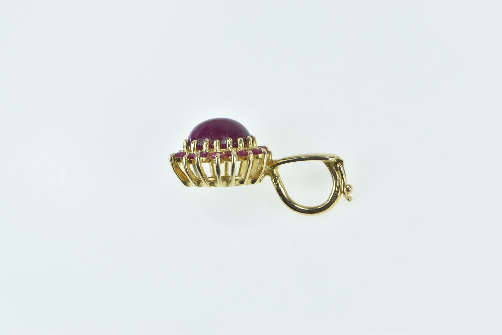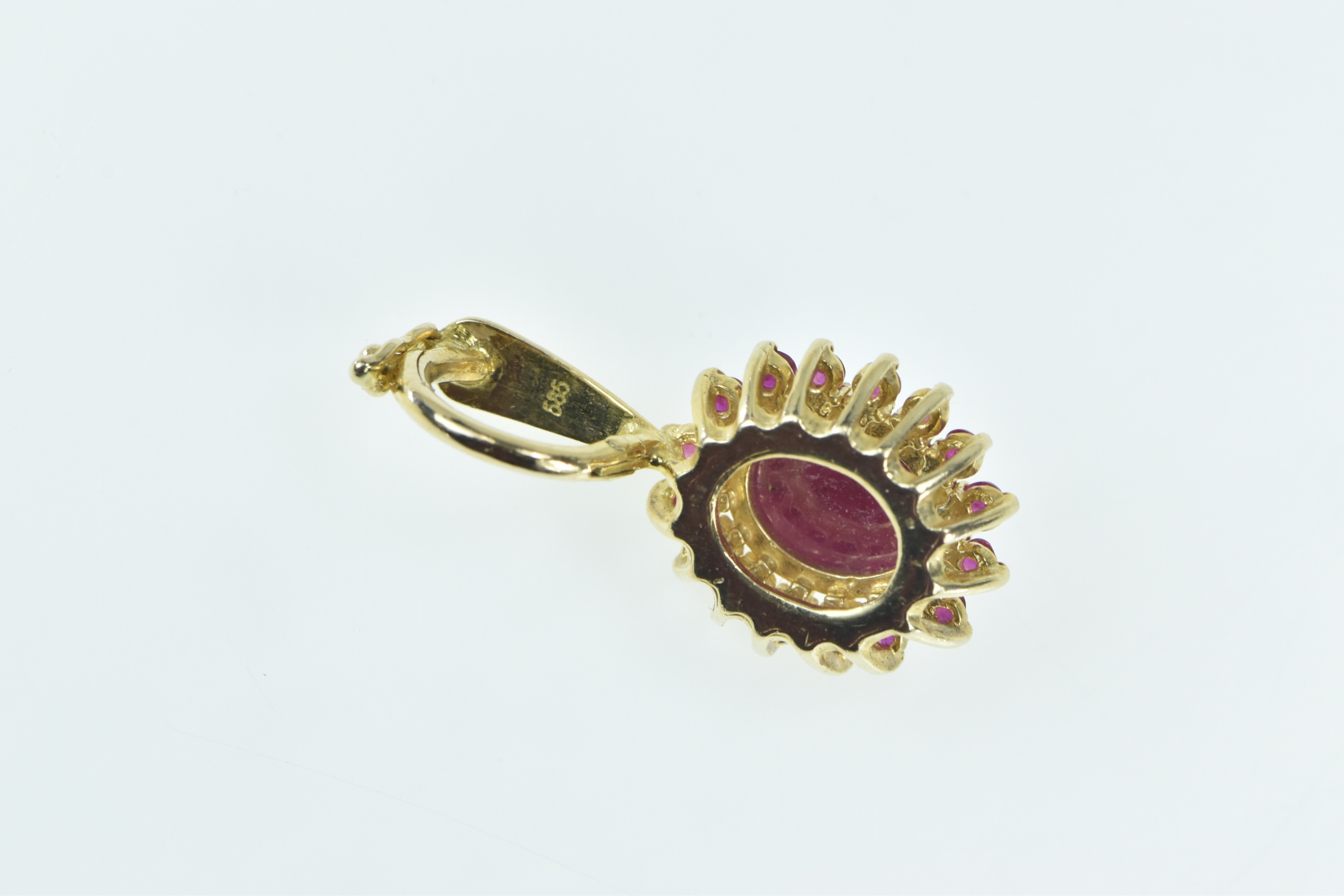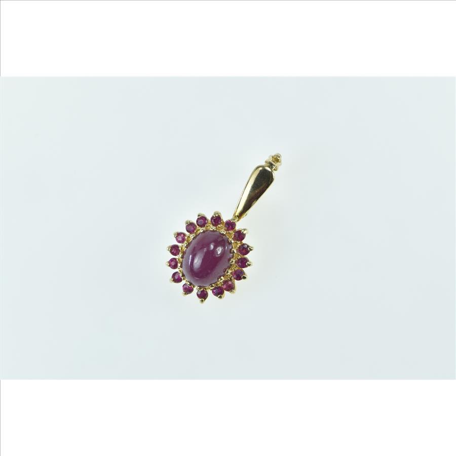 14K Oval Natural Ruby Pink Halo Statement Yellow Gold Pendant