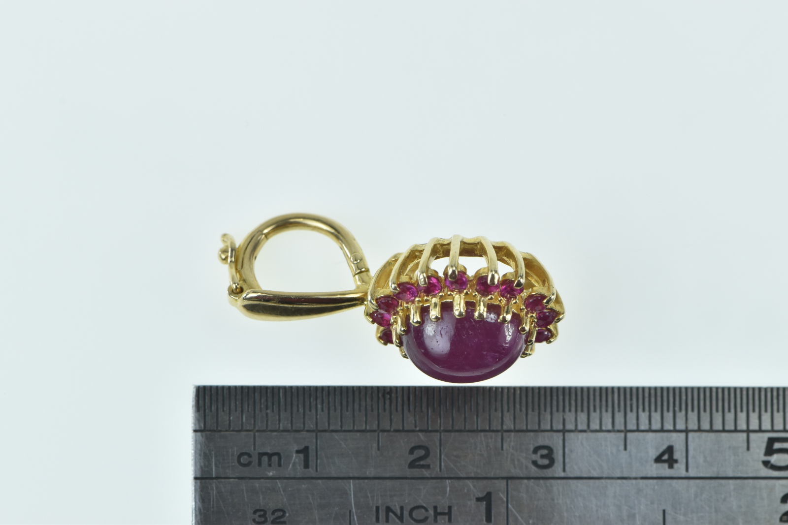Item:  14K Oval Natural Ruby Pink Halo Statement Yellow Gold Pendant