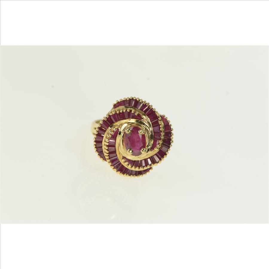 14K Oval Natural Ruby Swirl Halo Cocktail Yellow Gold Ring, Size 8.25