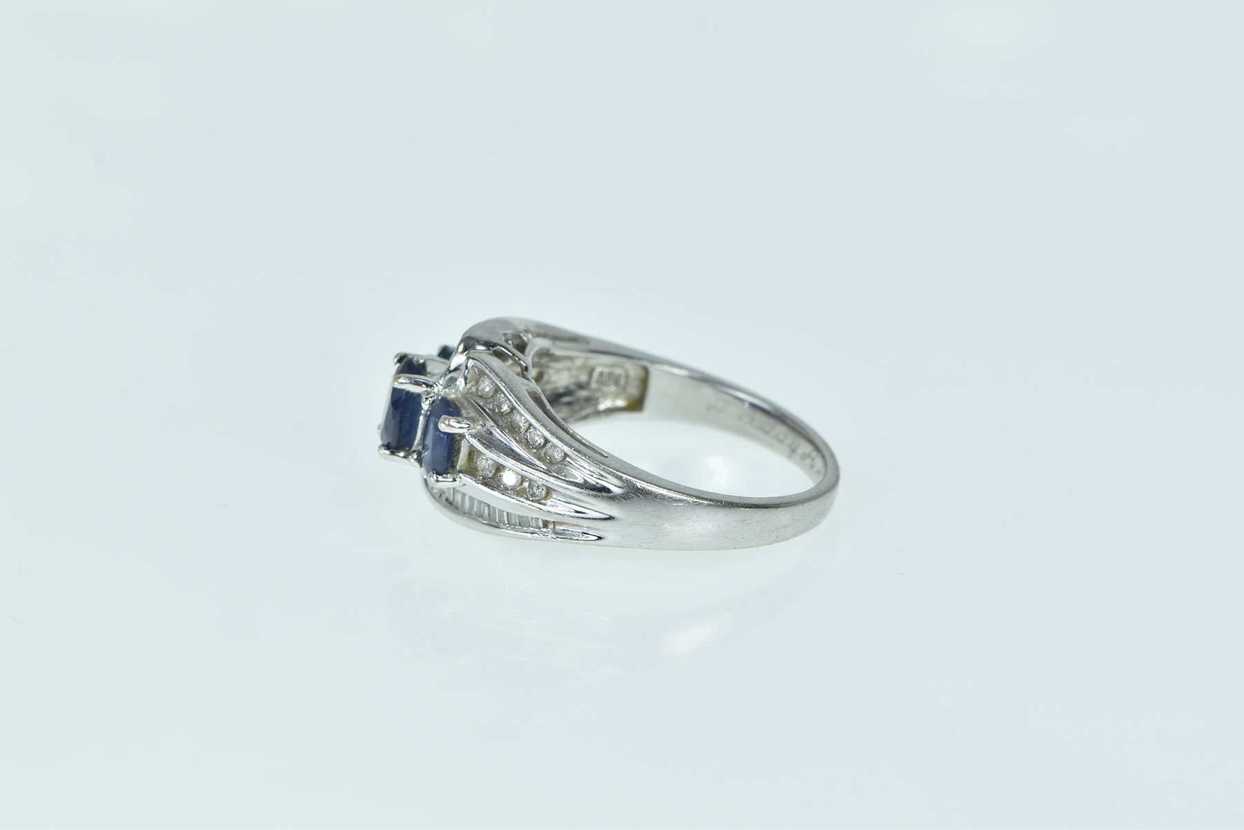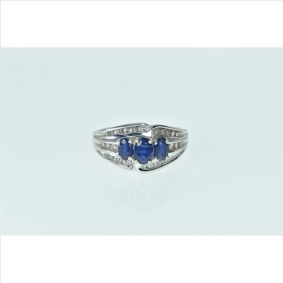 14K Oval Natural Sapphire Diamond Bypass White Gold Ring, Size 8