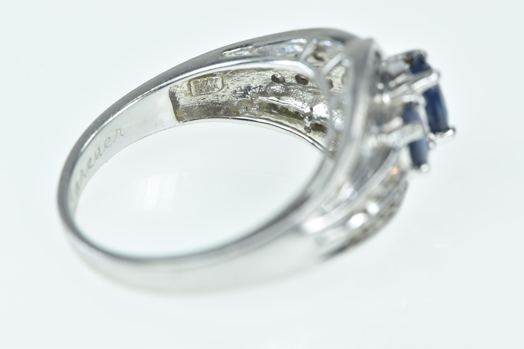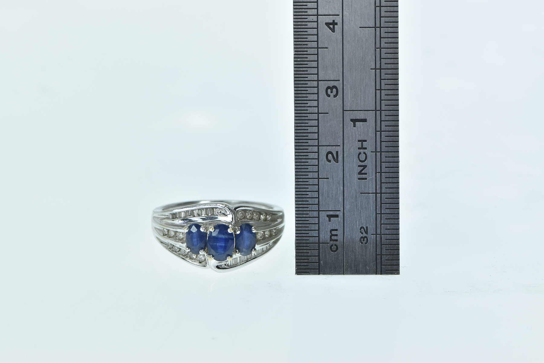Item:  14K Oval Natural Sapphire Diamond Bypass White Gold Ring, Size 8